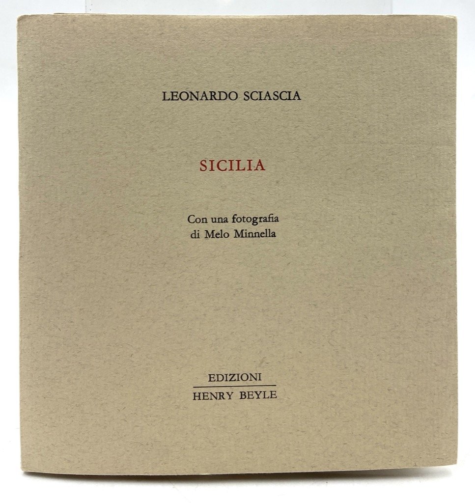 Brossura editoriale a stampa, cm 13.5 x 13.5, pp 30 (12), una fotografia applicata. Collana Piccola Biblioteca dei Luoghi Letterari, numero 6. Breve testo di Sciascia sulla Sicilia, accompagnato in questa edizione di 400 esemplari (il nostro non numerato, con invio a matita dell’editore) da una fotografia di Racalmuto di Melo Minnella (una di 8 fotografie diverse ciascuna in 50 esemplari).