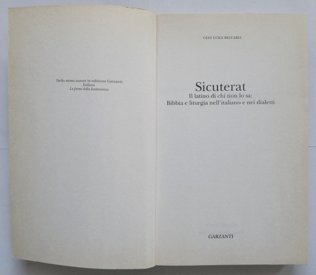 SICUTERAT di Gian Luigi Beccaria 1999 Garzanti Libro il latino liturgia dialetti