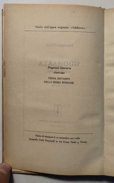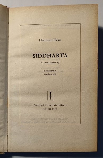 Siddharta. Poema indiano. Traduzione di Massimo Mila.