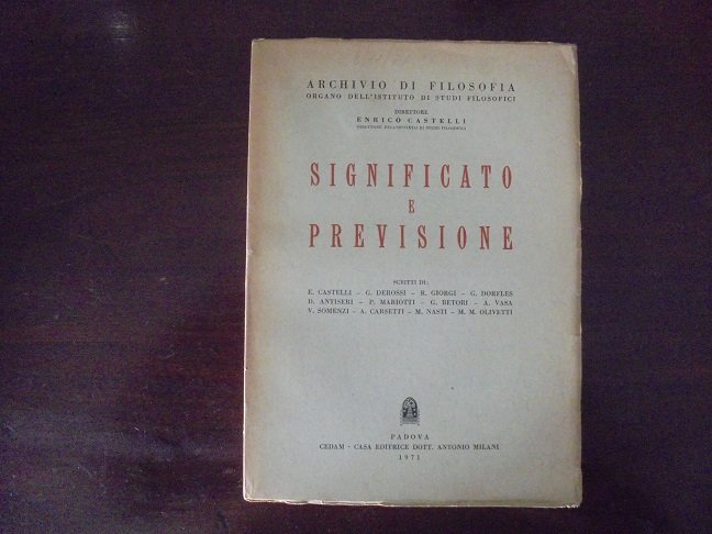 In 8∞gr.: pp. 203 + catalogo edit. Collana Archivio di Filosofia. Organo dell`Istituto di Studi Filosofici. Direttore Enrico Castelli. Br. edit., intonso, timbro abraso al front. Scritti di: E. Castelli, G. Derossi, R. Giorgi, G. Dorfles, D. Antiseri, ecc. ecc.