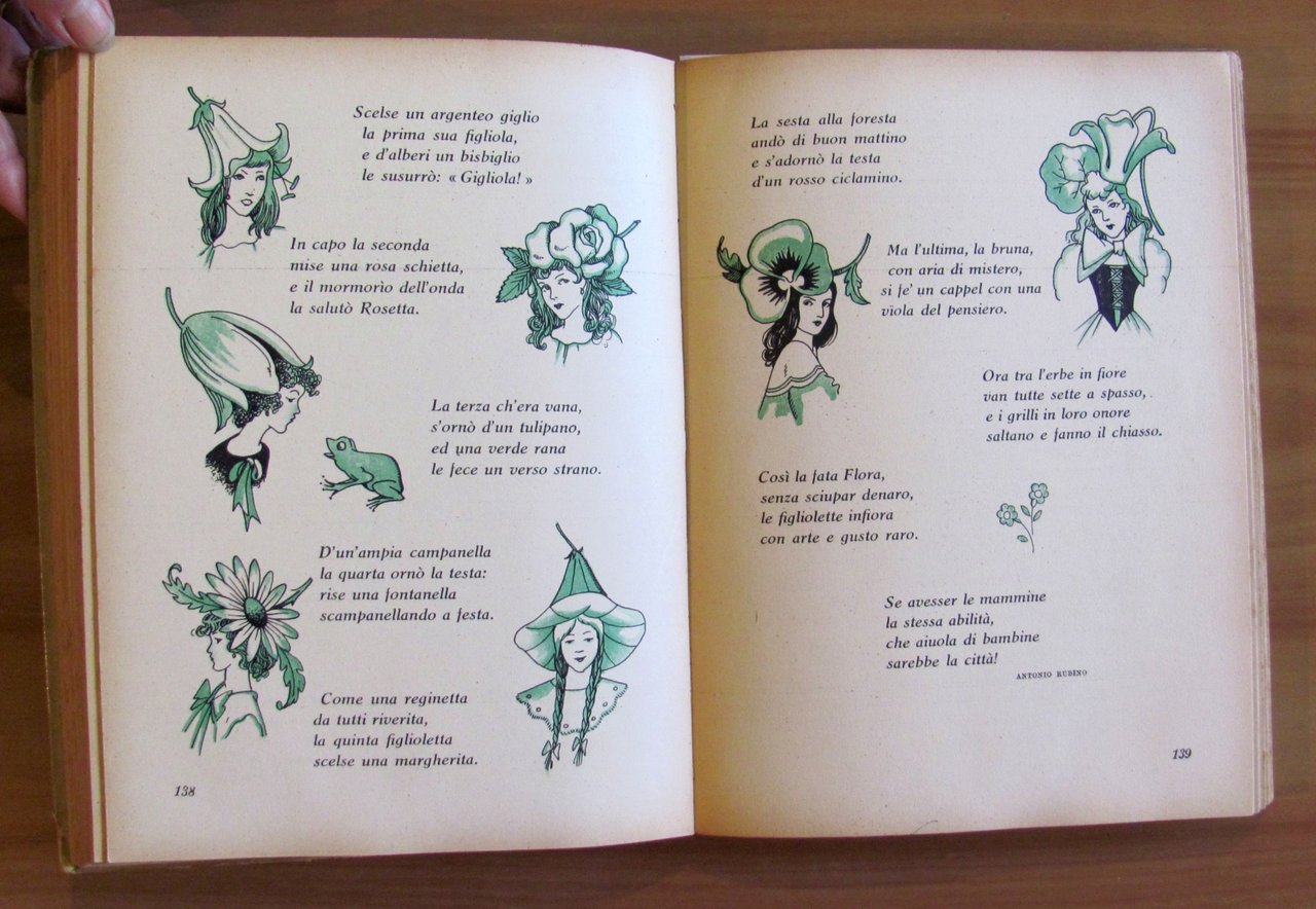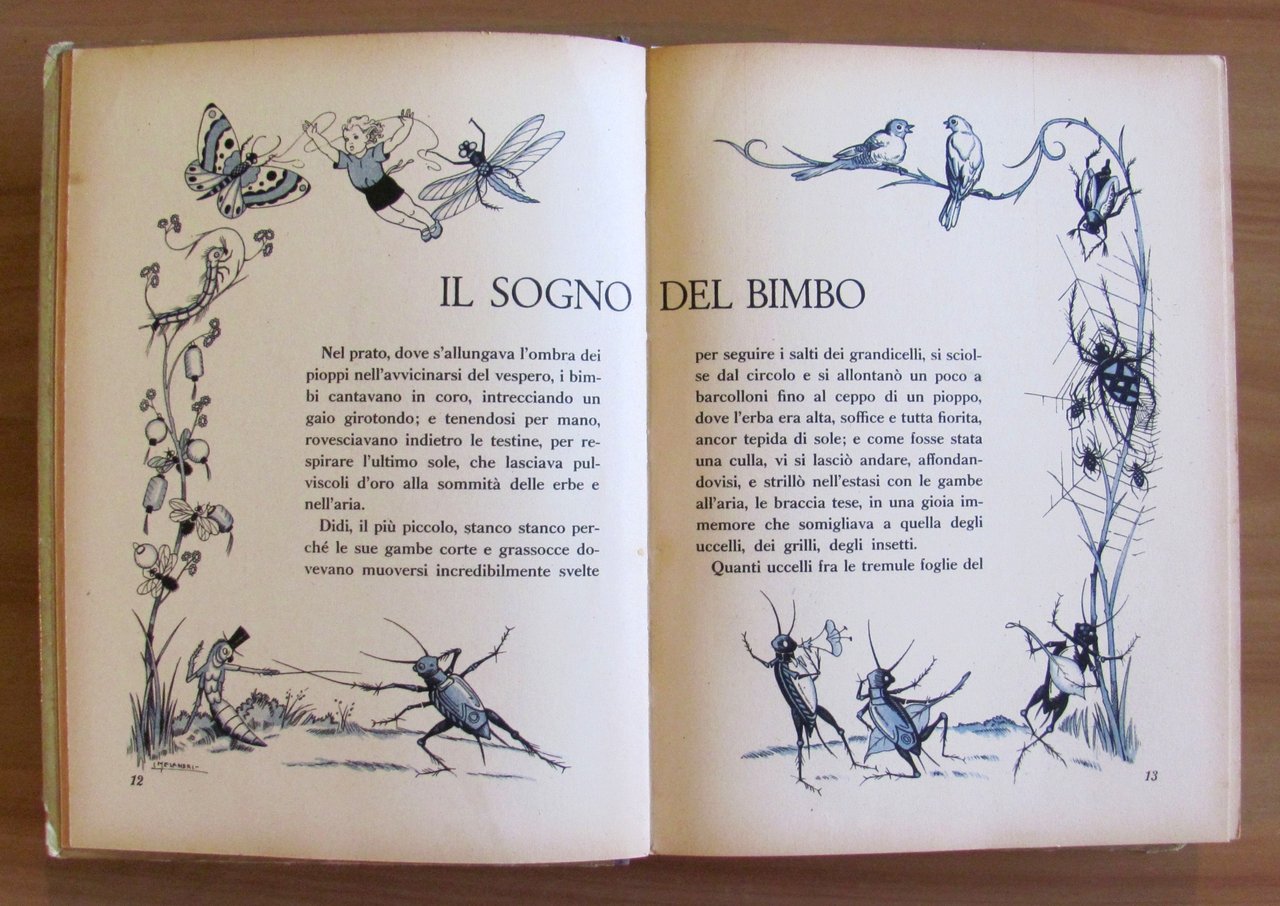 Copertina e 8 tavole a color f.t. di Melandri e moltissime illustrazioni in b/n, a due colori e in tricromia n.t., anche a piena e doppia pagina, di Anguissola, Baggioli, Biasotti, Cuman Pertile, Fabiani, Fabietti, Mastropaolo, Paltrinieri, Putelli, Rovinelli, Rubino, Tibaldi Chiesa, Villoresi, Visentini, Yambo. Editore Vallardi - Milano, I edizione 1947. Cartonato editoriale con dorso in tela originale con minime tracce d'uso ai margini delle copertine e piccolo disegno a penna al piatto. Rinforzo professionale alla cerniera interna di una pagina, peraltro ben legato, molto fresco e pulito. 21x27,5; pp.264. Raro e in Buonissimo stato. , Molto buono (Very Good)