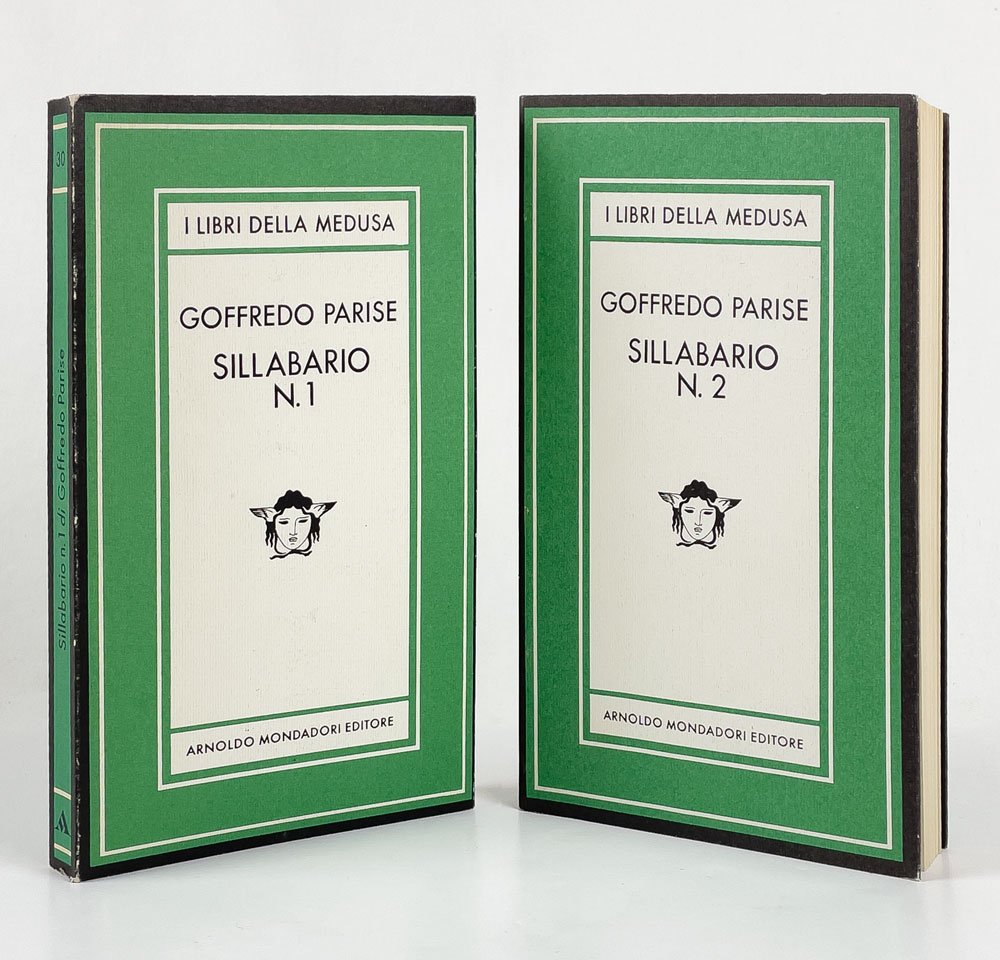 LIBRO Edizione originale per Sillabario N2, prima edizione per entrambi nella collanaOttimi esemplari.Prima edizione nella collana «Medusa» e prima in assoluto del secondo volume. Il capolavoro dell’autore, i «Sillabari» costituiscono una raccolta di racconti i cui titoli cominciano con diverse lettere dell’alfabeto (A di «Amore», F di «Felicità», G di «Grazia» e così via). Scrive Parise nella breve «Avvertenza» al secondo volume: «Dodici anni fa giurai a me stesso [.] di scrivere tanti racconti sui sentimenti umani, cosl labili, partendo dalla A e arrivando alla Z. Sono poesie in prosa».