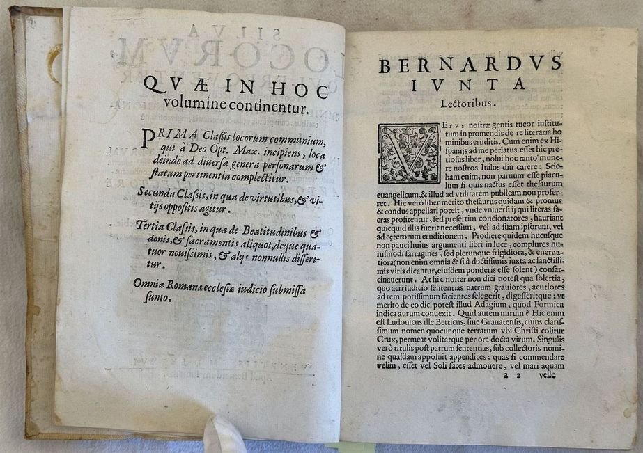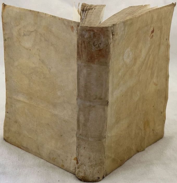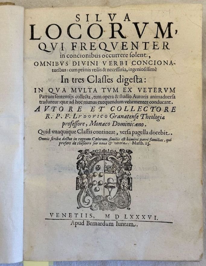 Edizione Giunta del 1586 della più celebre opera del teologo spagnolo Luis de la Granada (1504-1588). L'opera venne pubblicata contemporaneamente a Lione, Parigi e Venezia. Tra gli argomenti trattati: Contemplazione della croce, peccati, Paura della morte, estrema unzione, fine del mondo, Profonda orazione ecc. Introduzione dello stampatore Bernardo Giunta ai lettori. Marca editoriale al frontespizio: Stemma Medici-Cappello: 6 palle, leone, cappello. L'autore suddivide gli argomenti utilizzati nelle prediche in tre classi: luoghi comuni (tra cui predestinazione, Spirito Santo, Angeli, Santi, Martiri), Virtù e vizi (virtu, peccato veniale, blasfemia, invidia, usura, sacrificio, virginità, lussuria, castità), Beatitudine doni e Sacramenti. Alla fine opere della Chiesa Romana. In buone condizioni. Copertina in piena pergamena muta in buone condizioni generali con lievi usure ai margini e dorso. Legatura in buone condizioni. Pagine in buone condizioni con rare fioriture. Alcune gore d'umidità marginali. In 8. Dim. 22x17 cm. Pp. (24)+576+(1).Giunta edition of 1586 of the most famous work by the spanish theologist Luis de la Granada (1504-1588). The work was contemporary published in Lione, Paris and Venice. Introduction fot he publisher Bernardo Giunta to the readers. Editorial mark in the title page: Stemma Medici-Cappello: 6 palle, leone, cappello. At the end works of Roman Church. In good conditions. Full parhcment cover in good general conditions lightly worn in the extremities. Binding in good conditions. Inside pages are in good conditions with occasional foxing. Some dump stains in the edges. In 8. Dim. 22x17 cm. Pp. (24)+576+(1).