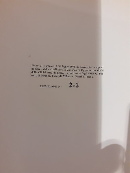 Tiratura limitata. Esemplare n. 213 di 900 copie.