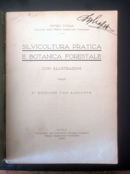 Seconda edizione con illustrazioni ed aggiunte. Tipografia Comando Gruppo Legioni, Milizia Nazionale Forestale, Roma, 1928. In 8vo, pp. 405 + VIII di Indice, ill. in b/n n. t., bross. edit. in carta verde. Un poco allenattao ma in buono statodi conservazione.
