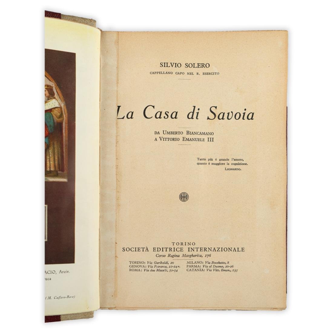 Autore: Silvio Solero Titolo: La Casa di Savoia Sottotitolo: Da Umberto Biancamano a Vittorio Emanuele III Edizione: S.E.I. Società Editrice Internazionale - Torino 1930 Dimensioni: 15 x 21 cm c.a. Pagine: 350 c.a. Copertina: Cartonato Condizioni: Molto buone come da foto