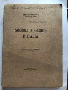[vt] Edizione illustrata. 6. migliaio. Contiene cenni vari sulla guerra 15-18 e molte riproduzioni fotografiche in b/n.: cimitero di Redipuglia e Gorizia, Cadora e Diaz, Baracca, D'Annunzio (con biografia), Martiri dell'Irredentismo (con biografia). Copertina staccata, appunto manoscritto al piatto, ordinari segni dl tempo, buono nel complesso. Pagg. 111. Brossura edit. Mis mm 250x175