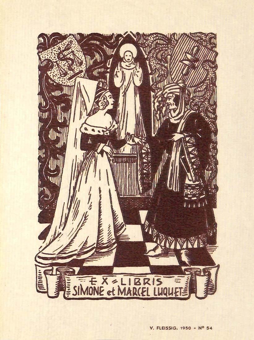 EX LIBRIS, XILOGRAFIA ORIGINALE Simone et Marcel Luquet - V.Fleissig 1950 Dimensioni: 10,3 x 13,7 cm Perfetto stato di conservazione generale EX LIBRIS, ORIGINAL XILOGRAPHY Simone et Marcel Luquet - V.Fleissig 1950 Dimensions: 10.3 x 13.7 cm Perfect general condition