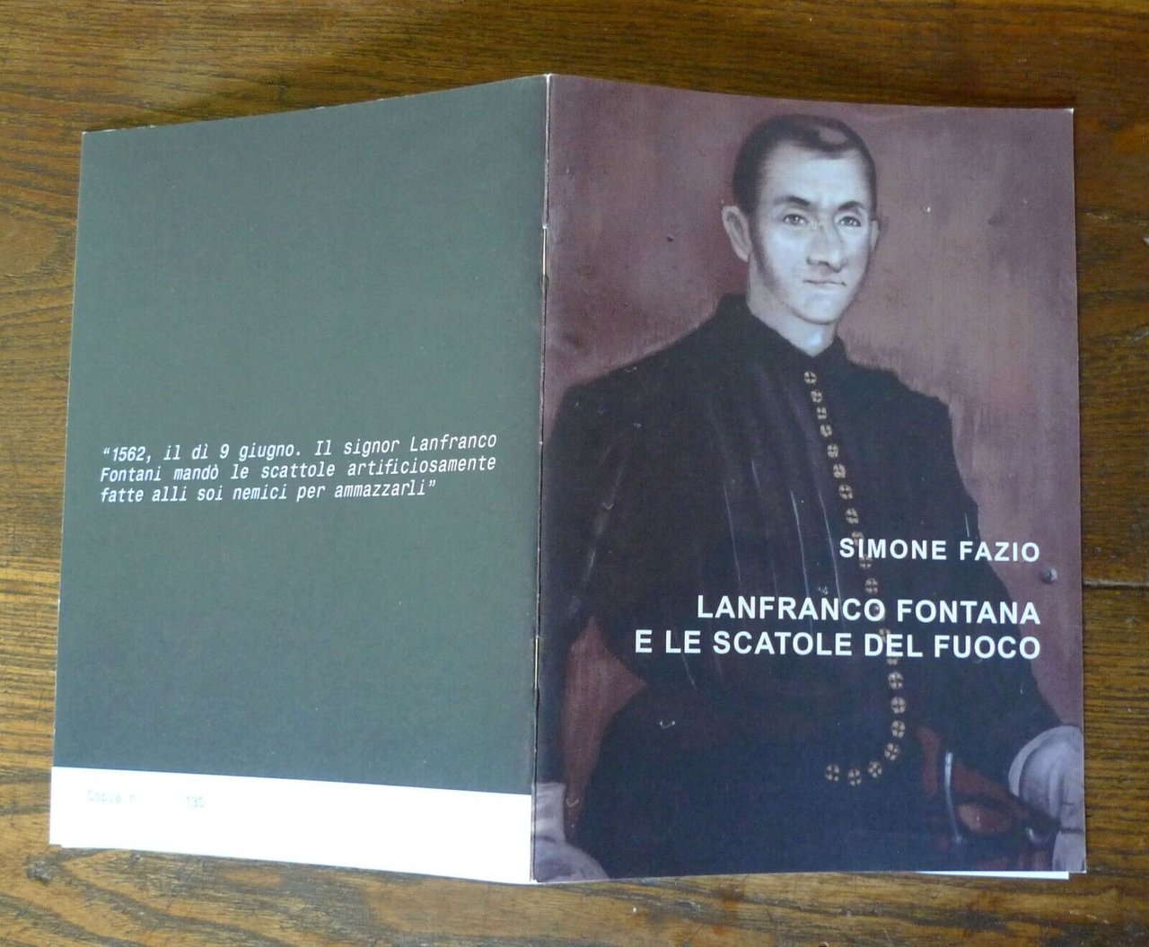 Simone Fazio,LANFRANCO FONTANA E LE SCATOLE DEL FUOCO.QUANDO LA STORIA PASSÒ DA CASTELNUOVO...Catalogo della mostra, Castelnuovo Rangone,Sala del Torrione,30 marzo-14 aprile 2019,Pixartprinting, Quarto D'Altino (VE) 2019,TIRATURA DI 130 COPIE,brossura, rilegatura con punto metallico,21x14,5 cm., pp.16,illustrazioni a colori,peso: g.100