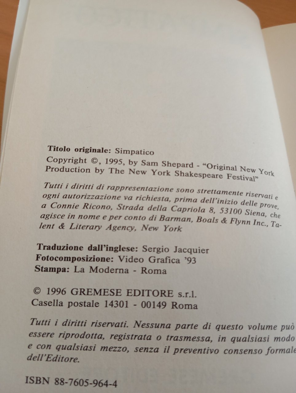 Simpatico, Sam Shepard, Gremese Editore, 1996