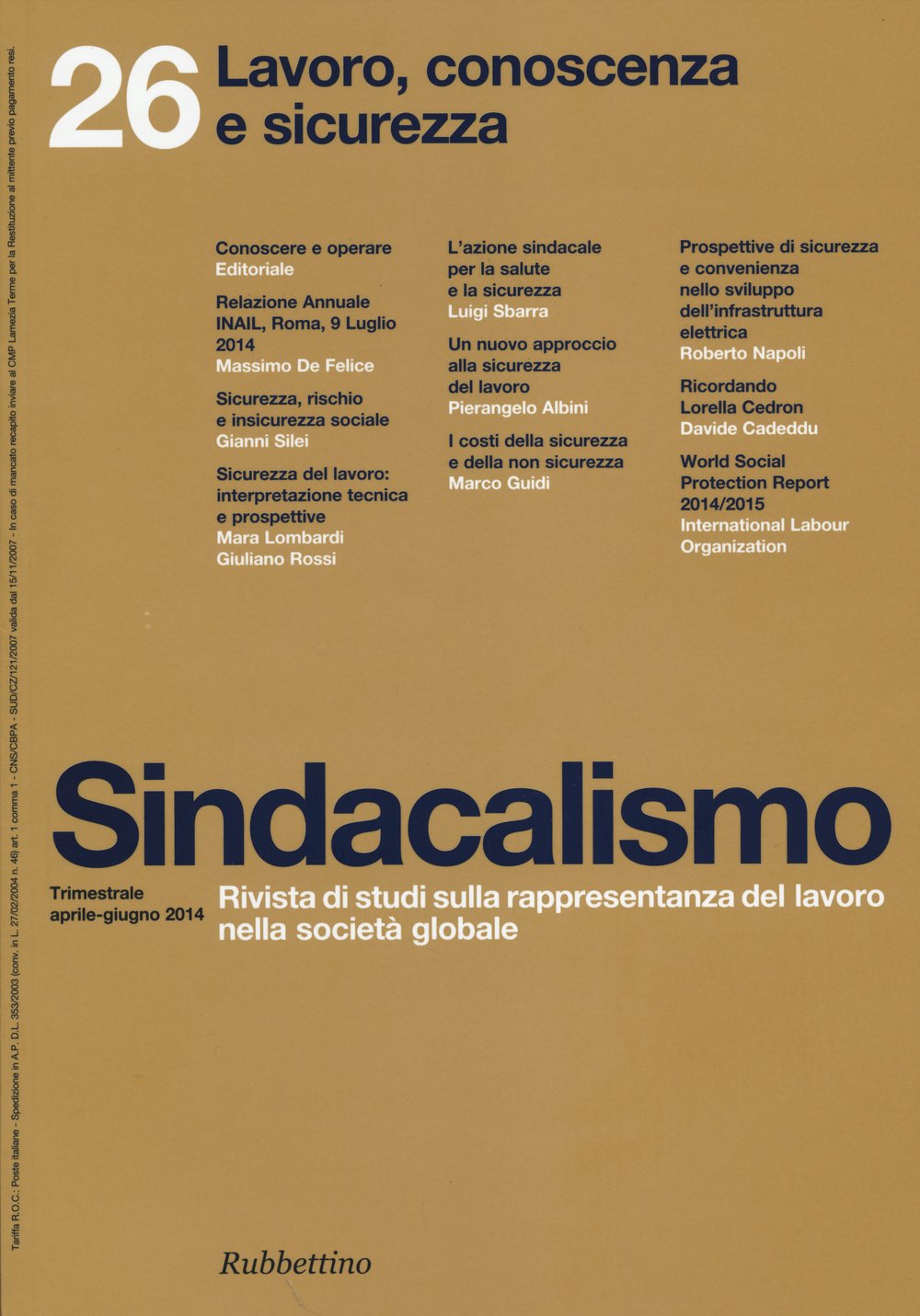 Sindacalismo la rivista di studi sulla rappresentanza del lavoro nella società globale. Una ricerca di dialogo e di confronto tra la ricerca scientifica internazionale, gli ambienti di studio, l'opinione pubblica, i soggetti sociali, gli operatori economici, i movimenti politici e le istituzioni del paese al fine di favorire una maggiore comprensione della realtà socio-economica che si sviluppa nei differenti livelli d'indirizzo di una società aperta, pluralista e democratica.