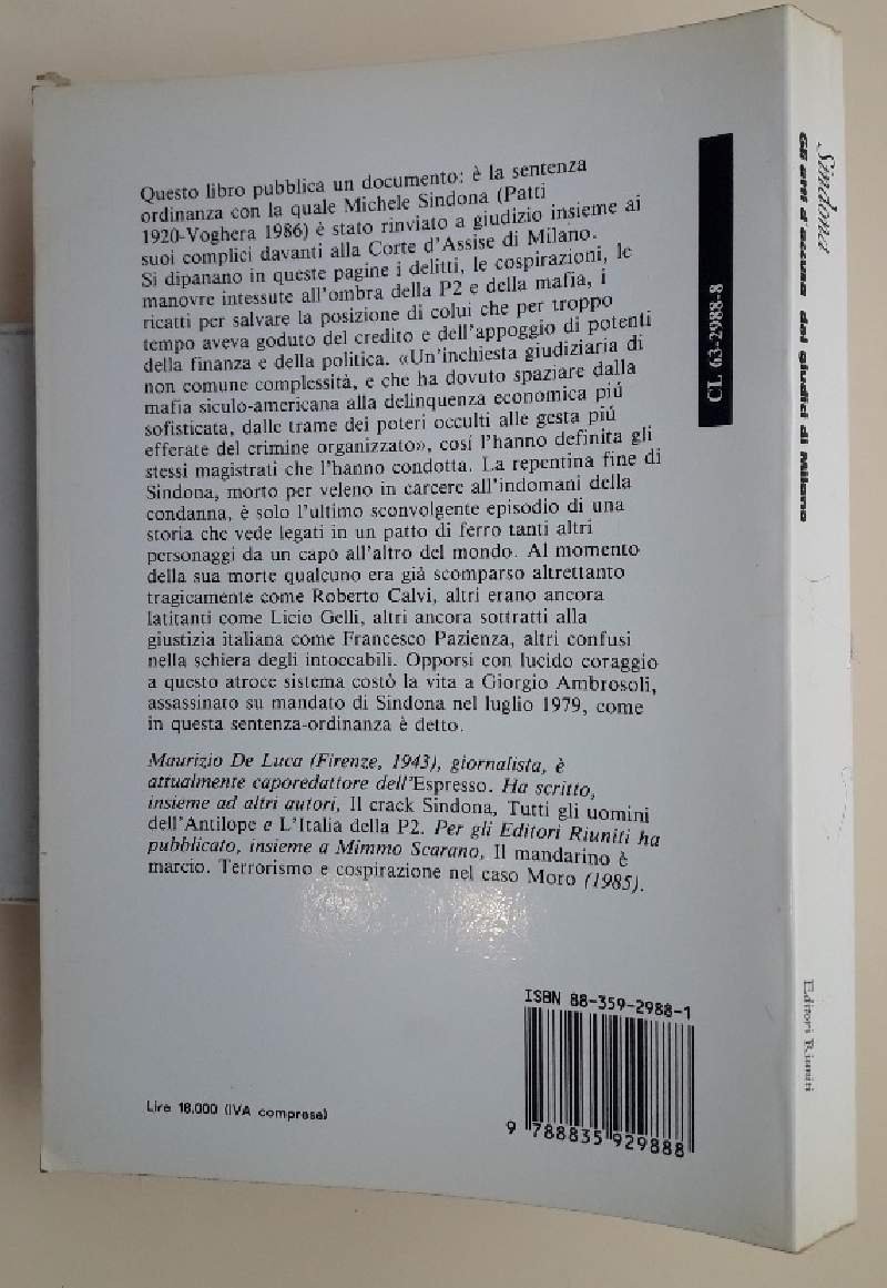 SINDONA - GLI ATTI D'ACCUSA DEI GIUDICI DI MILANO( 1986)