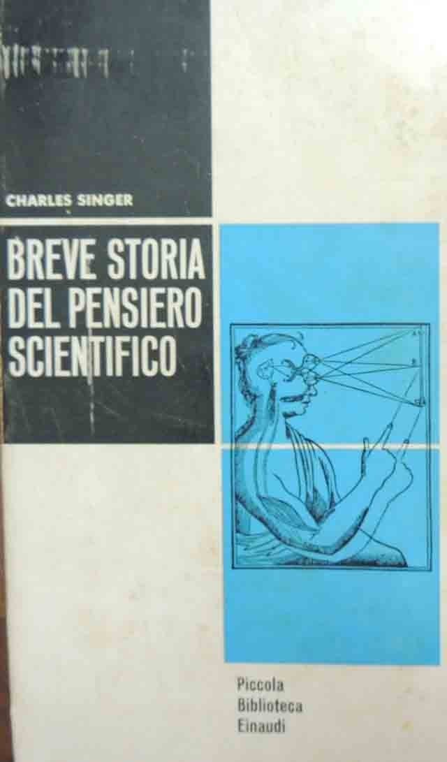 Charles Singer, Breve storia del pensiero scientifico, Giulio Einaudi Editore, Torino 1961, pp. 484, ill. b.n., cm 18, br. ed. Collana Piccola Biblioteca Einaudi, n. 16. Titolo originale: A short History of scientific Idea sto 1900. Traduzione di Flora Tedeschi Negri. Tracce d’uso, fioriture, minima ingiallitura della carta, qualche sottolineatura a evidenziatore, ma volume ancora integro e perfettamente fruibile.