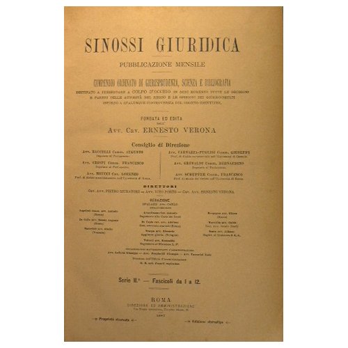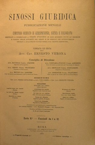 Sinossi Giuridica.Pubblicazione mensile.Compendio ordinato di Giurisprudenza,Scienza e Bibliografia.Serie I I Fascicoli da 1 a 12