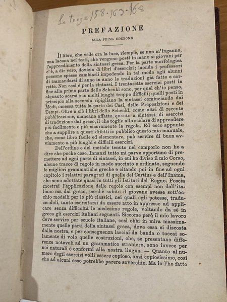 Decimasesta edizione de "Sintassi greca" del 1896, in ottime condizioni con segno duso.