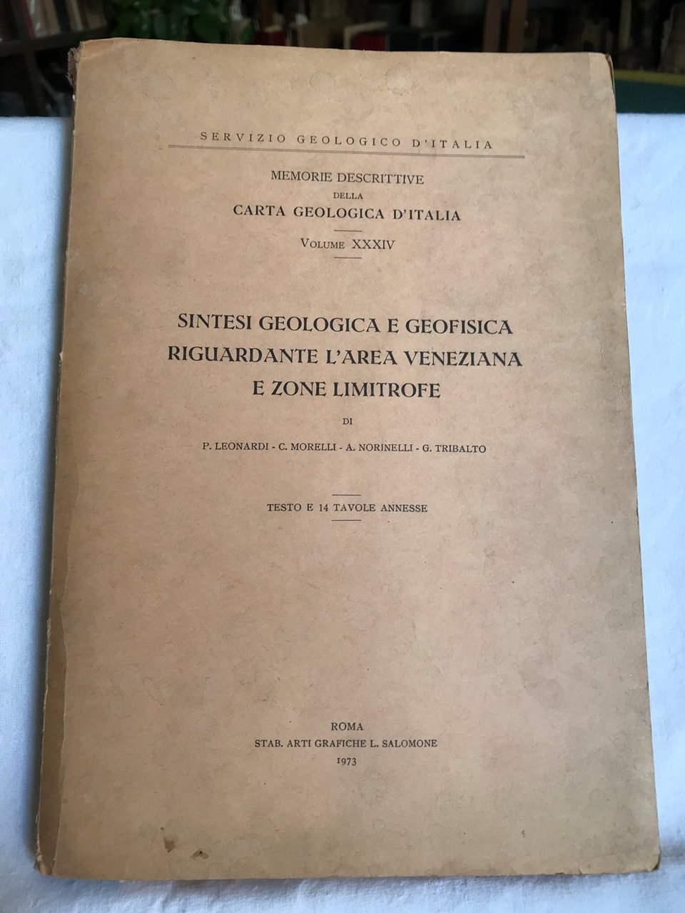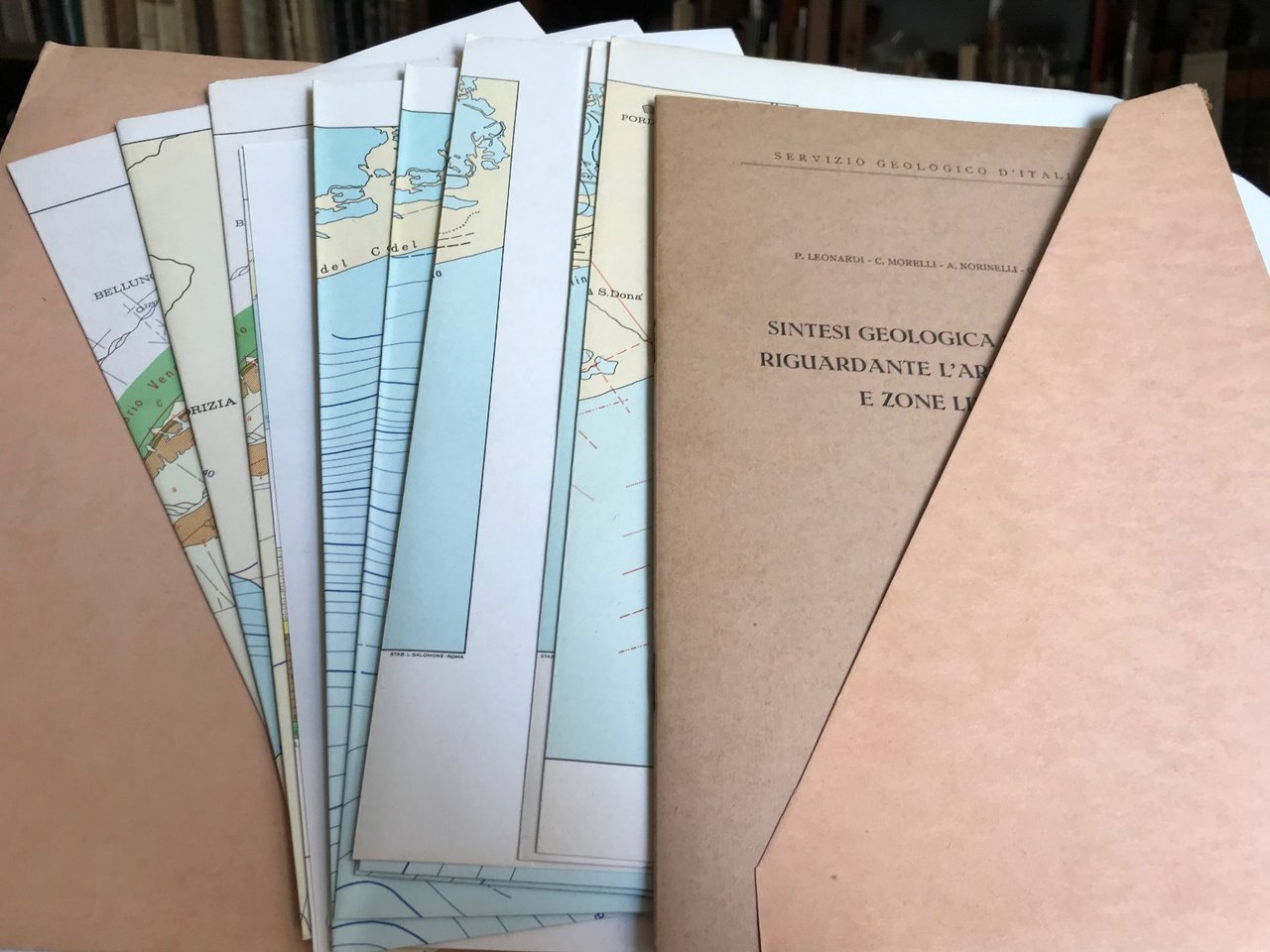 Fascicolo in 8 grande, brossura editoriale, titolo al piatto, frontespizio, prefazione, 24 pp. di relazioni, commenti e bibliografia, 14 tav. a colori ripiegate f.t. di varia grandezza, il tutto racchiuso in cofanetto cartonato con titolo al piatto ed al dorso. Facente parte delle Memorie Descrittive della Carta Geologica d'Italia, il presente studio il risultato di una lunga e appassionata attivit di uno speciale gruppo di lavoro del 'Comitato per la difesa di Venezia'. Sulla base dei dati raccolti sono stati realizzati gli elaborati geologici e geofisici qui presenti, fra cui: lo Schema geologico del Veneto (con carta indice del rilievo sismico, pozzi e giacimenti gassiferi); le Anomalie di Bouguer; varie Batimetrie, varie Sezioni geologiche; Sismosezione nell'area urbana di Venezia; Curve isocrone e isobate. Ognuna delle 14 tavole spiegata e commentata dai Professori P. Leonardi, C. Morelli, A. Norinelli, G. Tribalto. In pi che buono stato.