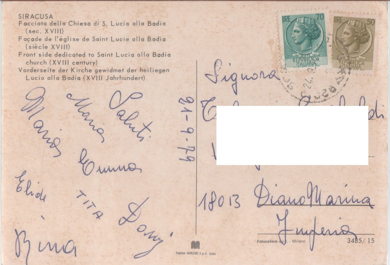 Siracusa. Facciata della chiesa di S. Lucia alla Badia. Viaggiata 1979