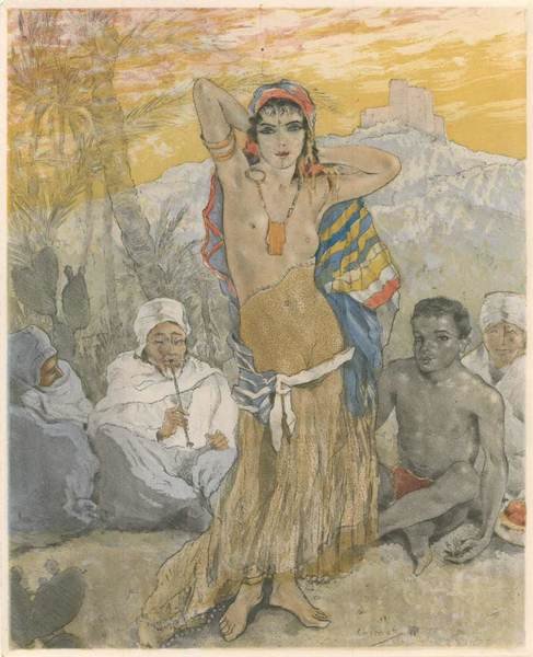 In-8 gr. (mm. 278x222), brossura alla francese, astuccio in cartonato editoriale, pp. (12),90,(12), a fogli sciolti, molto ben illustrato da 6 affascinanti composizioni originali, incise a colori au repérage da Edouard Chimot, così composte: 1 antiporta, 1 grande testata, 1 finale e 3 tavole fuori testo.Cfr. Carteret,IV, p. 289: Edition recherchée, cotée - Benezit,III, p. 593.Bella edizione di 225 esemplare numerati. Il ns., 182, appartiene alla tiratura di 160 (num. 56 a 215) sur vélin de Rives, contenant la suite des eaux-fortes termineés en couleurs. Molto ben conservato.