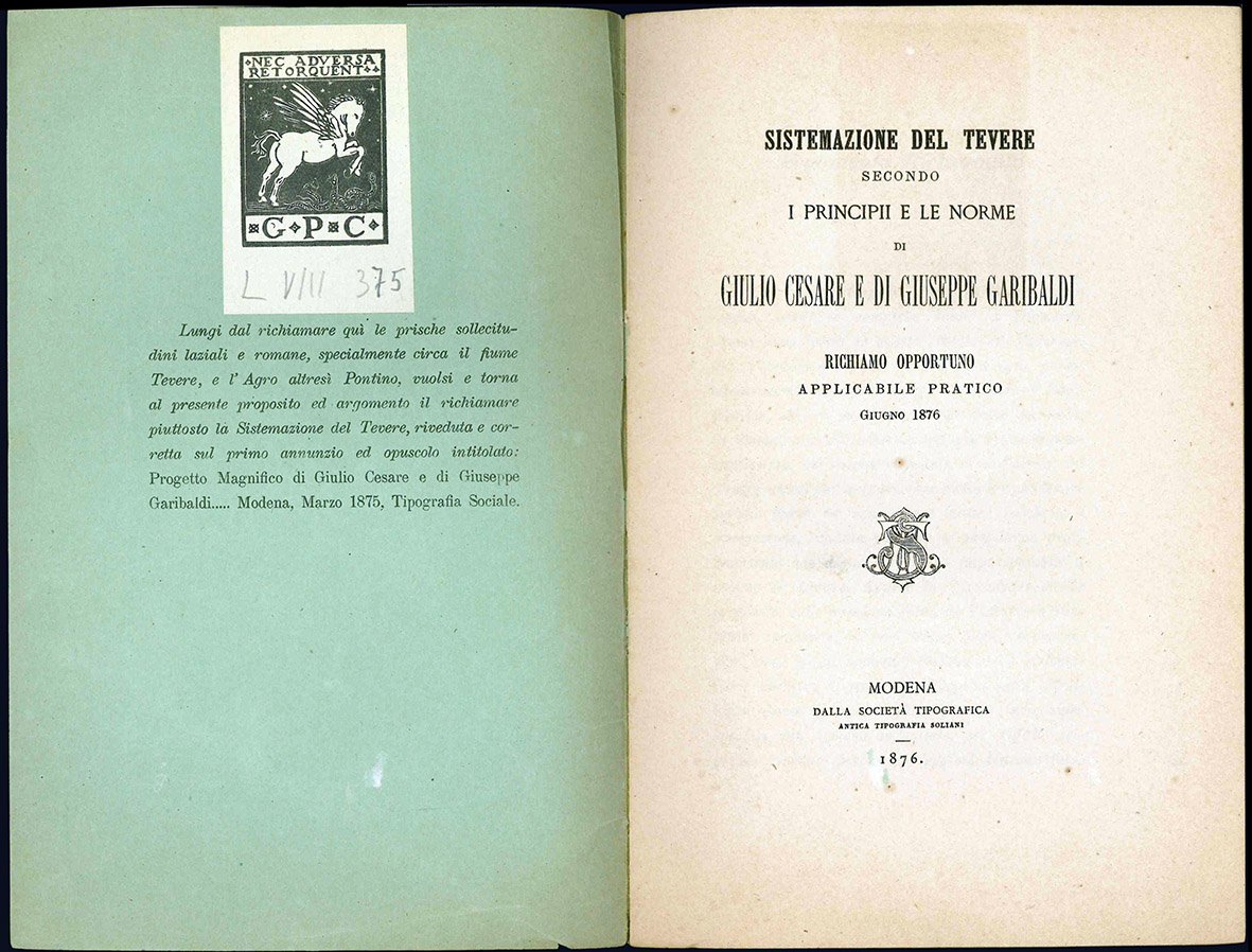 Sistemazione del Tevere secondo i principii e le norme di Giulio Cesare e di Giuseppe Garibaldi. Richiamo opportuno applicabile pratico. Giugno 1876.