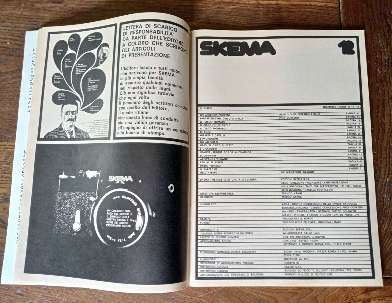 SKEMA n.12 1971,MENSILE DI ATTUALITÀ E CULTURA.IL CIRCO[fotografia,Fellini
