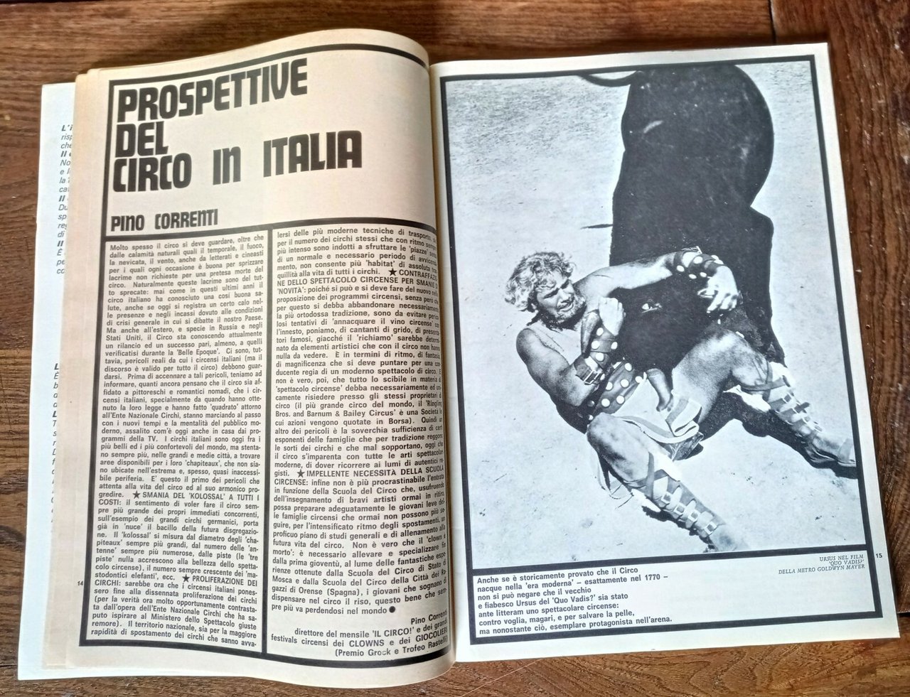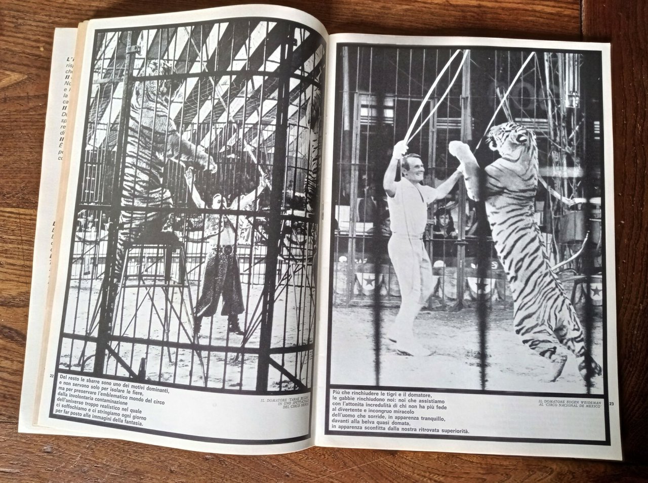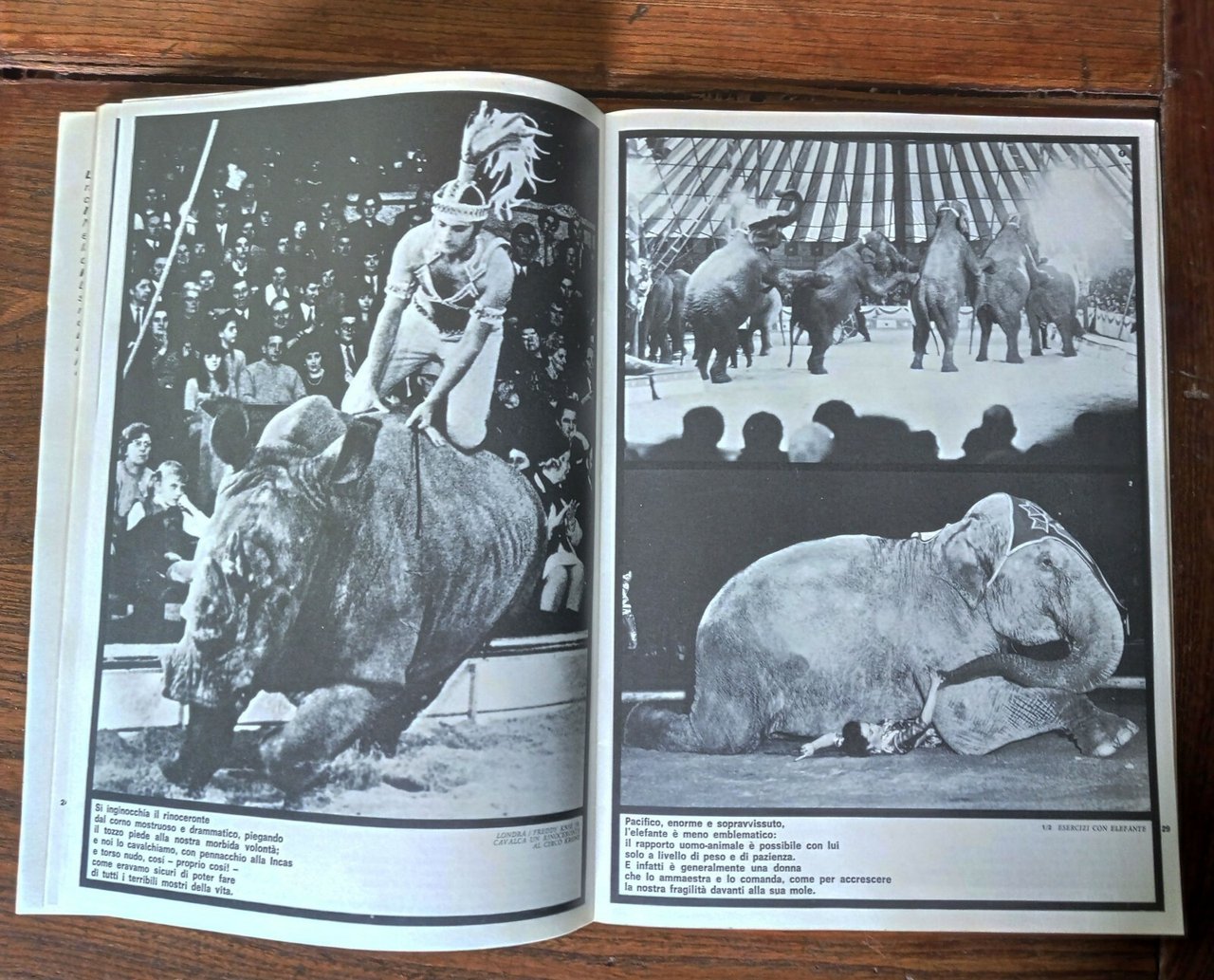 SKEMADicembre 1971, ANNO III, N.12MENSILE DI ATTUALITÀ E CULTURA.IL CIRCO.DIRETTORE RESPONSABILE: FRANCO VANNI.EDIZIONI SKEMA /STAMPA POLIGRAFICI IL BORGO, Bologna 1971,brossura, rilegatura con punto metallico,29,5X21 cm., pp.60,numerose illustrazioni fotografiche in bianco e nero,in omaggio un poster a colori su paginaripiegata ed il calendario dell'Anno 1972,peso: g.200CONDIZIONI DELLA RIVISTA: ottime, come nuova,ancora nel cellophane SOMMARIO UN APOLOGO PERFETTO___________________ARTICOLO DI FEDERICO FELLINI________________PAGINA 12 PROSPETTIVE DEL CIRCO IN ITALIA___________________________PINO CORRENTI____________PAGINA 14 IL 'CIRCO' ROMANO__________________________________________________________________PAGINA 15 IL CIRCO FIN DE SIECLE_____________________________________________________________PAGINA 18 IL CIRCO MODERNO___________________________________________________________________PAGINA 20 LE FIERE___________________________________________________________________________PAGINA 22 GIRAFFE E CAVALLI__________________________________________________________________PAGINA 26 I PACHIDERMI ______________________________________________________________________PAGINA 28 GLI ACROBATI______________________________________________________________________ PAGINA 30 URSS / IL CIRCO DI STATO___________________________________________________________PAGINA 36 I GIOCOLIERI ____________________________________________________________PAGINA 38 SPAGNA / CIRQUE DE LOS MUCHACHOS___________________________________________________PAGINA 41 EQUILIBRISTI_______________________________________________________________________PAGINA 42 ARRIVANO I 'CLOWNS' _____________________________________________________________PAGINA 44 FELLINI AL CIRCO___________________________________________________________________PAGINA 48 PABLO PICASSO______________________________________________________________________PAGINA 50 IL PARERE DI:______________________________________________________________________PAGINA 51 NELL’INSERTO__________________________________________________ UN MANIFESTO ’BARNUM’