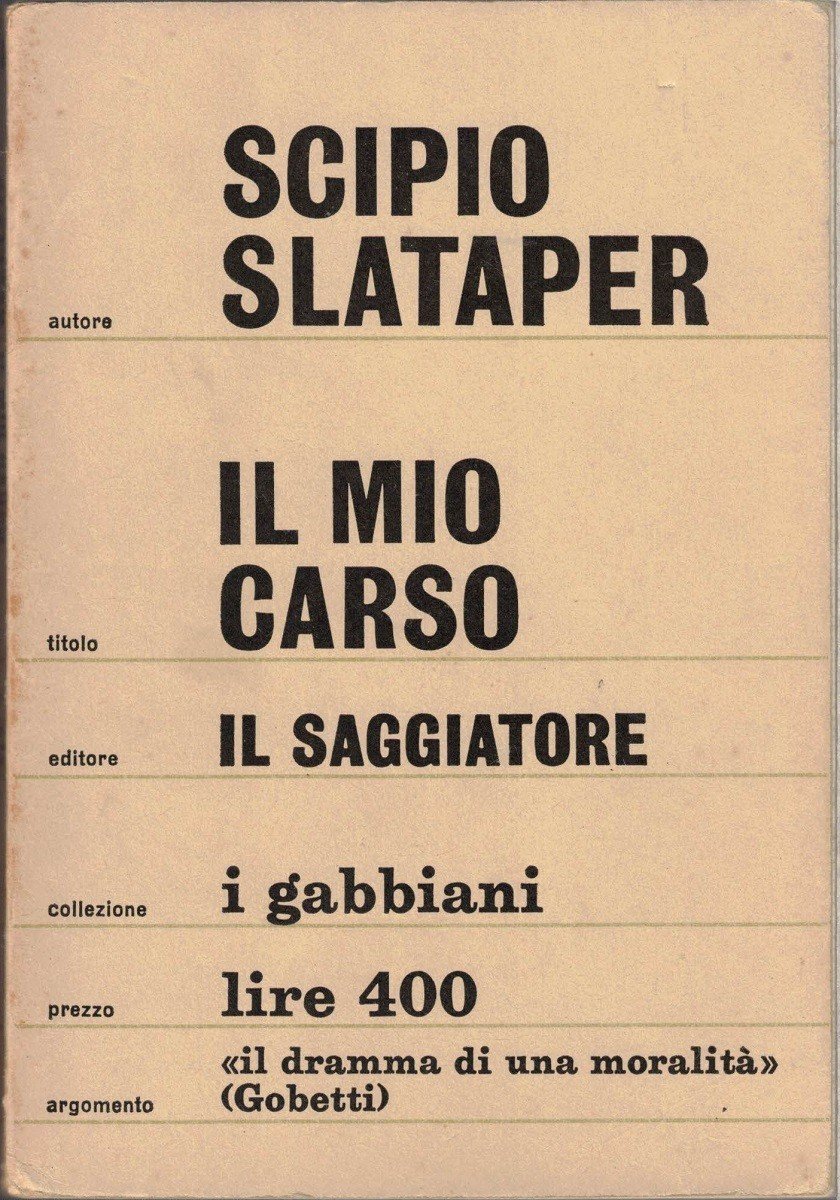 Scipio Slataper, Il mio Carso, Casa editrice Il Saggiatore, s.l. (ma stampato a Sancasciano Val di Pesa presso le Officine Grafiche Fratelli Stianti) 1965, prima ed. nella collana I Gabbiani, pp. 123, cm 17, br. ed. Collana I Gabbiani, vol. 34. Il volume riproduce integralmente il testo pubblicato dalla Libreria della Voce (Firenze, 1912). Piccola firma d’appartenenza al frontespizio. Ordinarie tracce d’uso e lieve brunitura alla brossura, per il resto esemplare ben conservato, con interno pulito e ben tenuto.