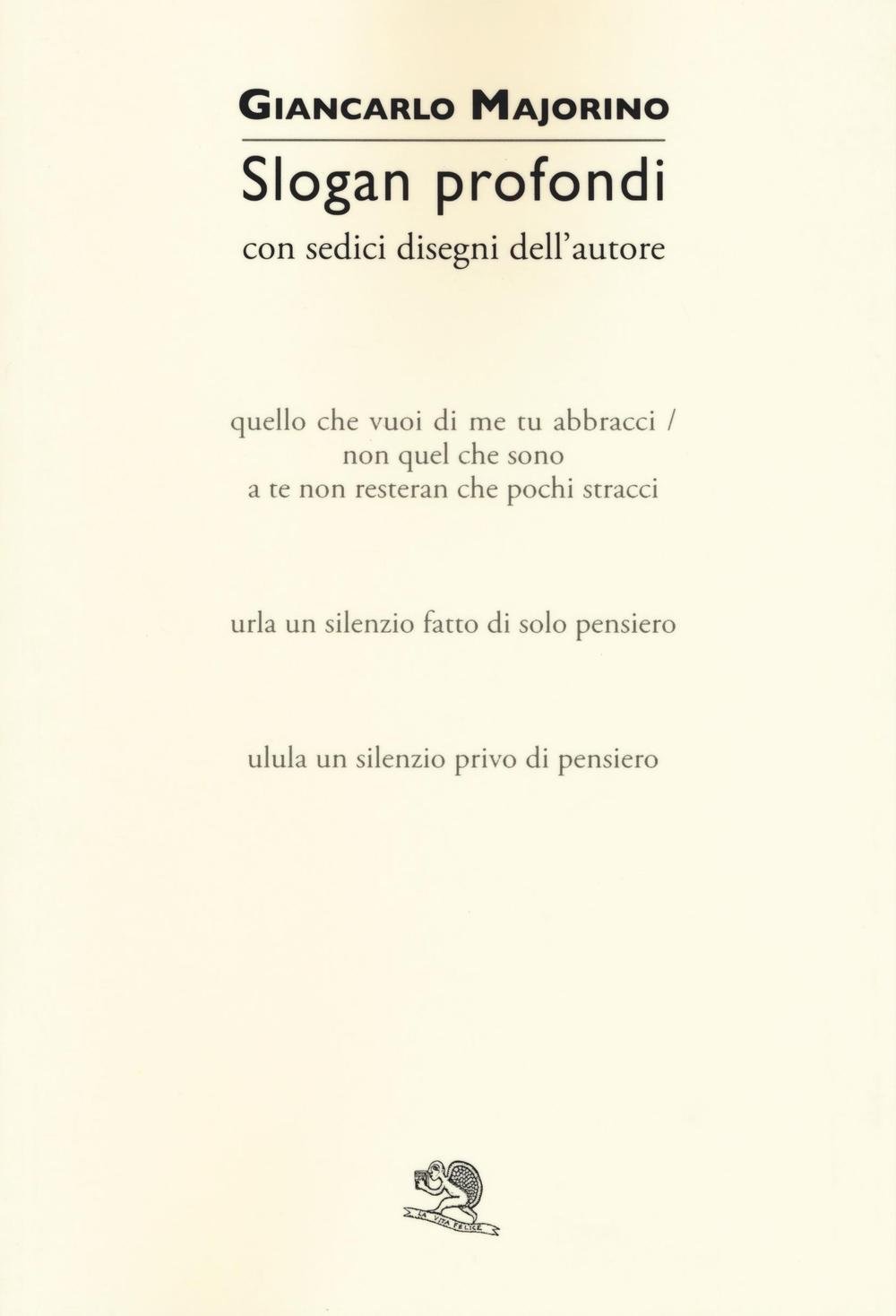 "La poesia davvero tale, quella che si fa in questi anni o decenni, rimane più o meno sconosciuta. Per varie ragioni e irragioni caratterizzabili da frasi come 'non è più quella di prima', 'è troppo difficile', 'non è tempo di poesia, questo'. L'idea che ha partorito questa operetta nasce proprio dalle considerazioni sinteticamente esposte sin qui dalla duplice competenza di un poeta che da parecchi milioni di minuti scrive e insegna. Il titolo Slogan profondi ne può accrescere il riverbero, astutamente invadendo con una guarnigione di audaci versi propri, leggibili, eventualmente assimilabili senza troppa fatica, l'enorme campo della comunicazione scorrevole, della pubblicità, dove ci si limita a timbrare sulla faccia della gente ovvie scemenze, richiami a ciò che già sanno, spavalde insistenze affinché si compri qualche oggetto perlopiù inutile, falsotto in genere. Cosi trascurando la potenza plurivalente della lingua (usata in modo scadente o idiota da tutti gli influenzatori, fantasmi televisivi o politici che siano), la particolare energia senza limiti che scaturisce da pensiero a linguaggio e da linguaggio a pensiero e di cui la poesia è zona primaria, ricca di purezza e di spregiudicatezza insieme, distante anni luce dal denaro, dalla carriera e da ogni compromesso." (dalla prefazione)