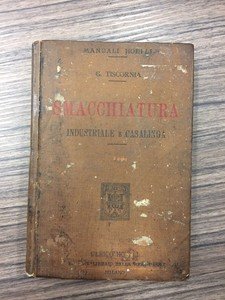 Di abiti - Biancherie - Stoffe - Lane - Seta - Merletti… Bucato .- Decolorazioni - Scacchiature semplici e composti liscivie - saponi - stiratura e lucido. Milano. Hoepli 1913, 16°, pp. XII+220+64. Leg. Edit. sbiadita con segni del tempo e mancanze alla cerniera del dorso.
