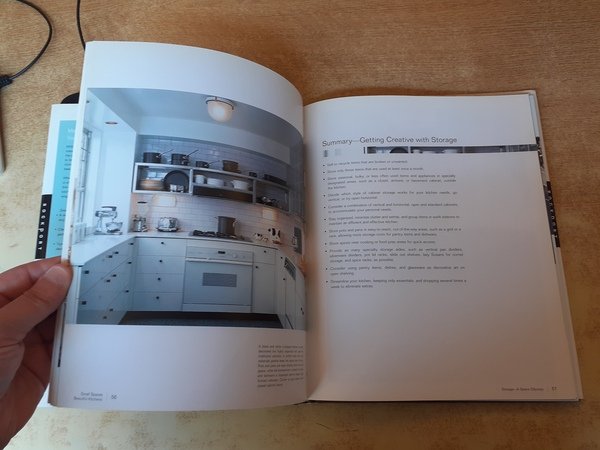 Volume in lingua inglese dedicato a cucine in piccoli spazi con diversi accorgimenti e consigli per la disposizione.