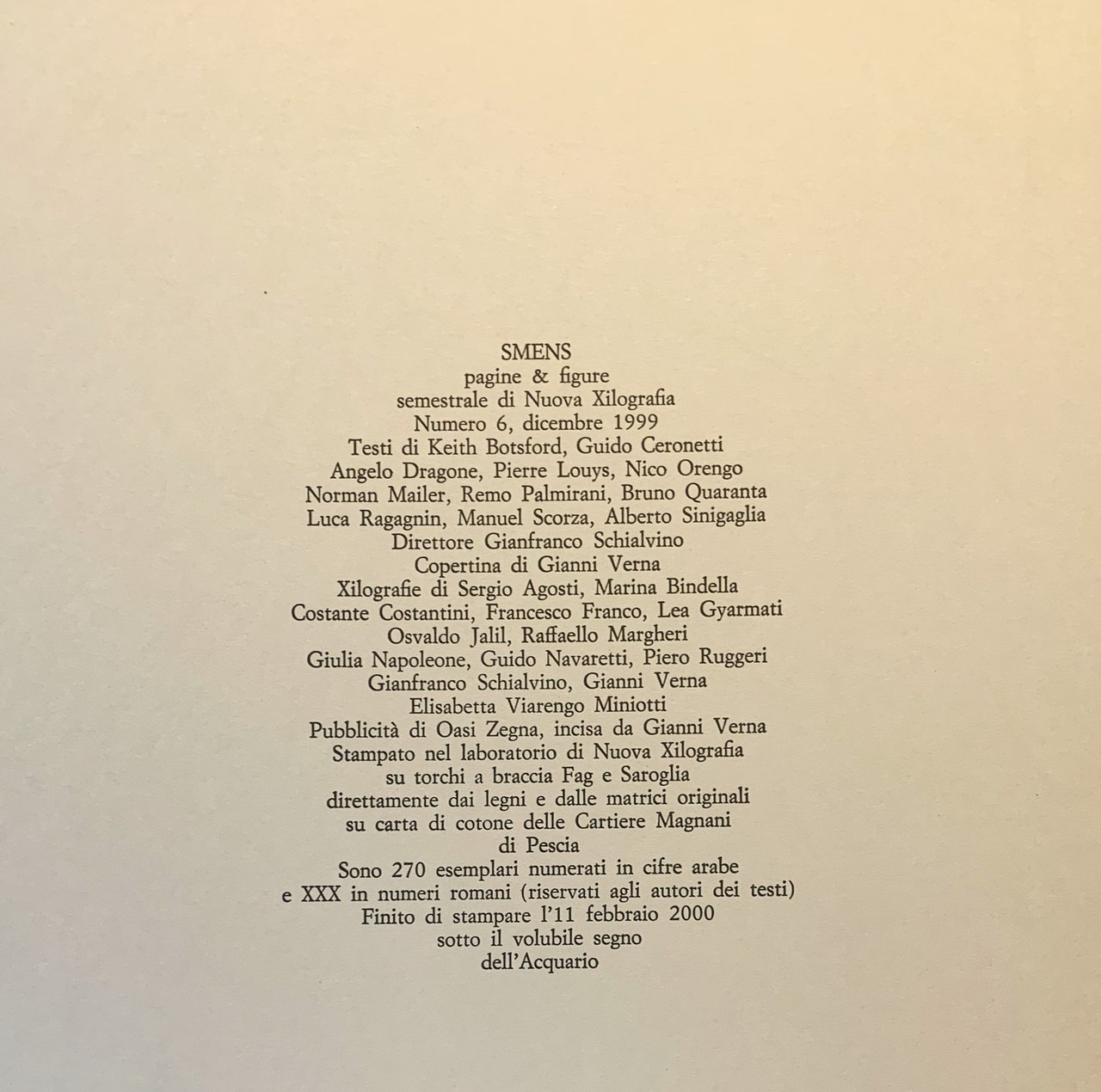 Xilografie di Sergio Agosti, Marina Bindella, Costante Costantini, Francesco Franco, Lea Gyarmati, Osvaldo Jalil, Raffaello Margheri, Giulia Napoleone, Guido Navaretti, Piero Ruggeri, Gianfranco Schialvino, Gianni Verna, Elisabetta Viarengo Miniotti0