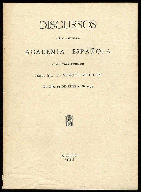 Madrid: [Academia Española] (S. Aguirre, Impresor), 1935.- 70 p.; 4º menor (21,8 x 15,7 cm); Cartulina Ed.* Excelente estado. LENGUA ESPAÑOLA