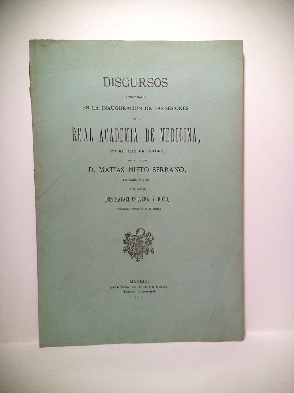 Madrid: Imp. de José de Rojas, 1882.- 34 p.; 4º mayor (27 x 18,2 cm); Rústica Ed.* MEDICINA EN GENERAL Y OTRAS ESPECIALIDADES MEDICAS