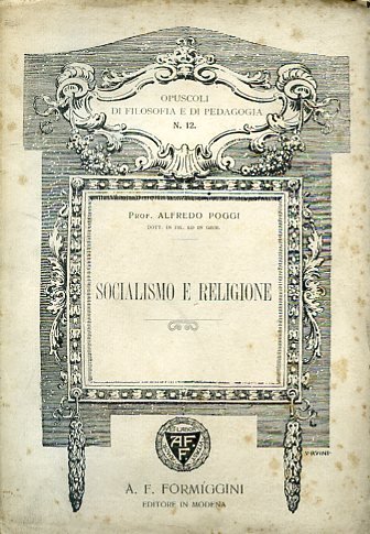 In-8°, pp. 39, brossura editoriale con titolo entro cornice ornamentale xilografica disegnata da V. Ruini. Fioriture fisiologiche alla brossura, ma perfetto stato. Prima edizione in forma a sé, estratta dalla 'Riista di Filosofia. Organo della Società Filosofica Italiana', anno III, fascicolo IV. Il Poggi (Sarzana, 1881-Genova, 1974), uomo politico socialista, filosofo ed educatore, entrò in contatto, nella propria attività di antifascista, con i fratelli Rosselli e con il gruppo di 'Giustizia e Libertà' (tra i suoi allievi vi fu anche Giorgio Caproni). Militante socialista sin dalla gioventù, contribuì con i suoi scritti a 'illustrare e a difendere la concezione del socialismo come ideale morale e un'interpretazione del marxismo come dottrina umanistica e democratica. con implicazioni politiche in senso antibolscevico' (Cfr. Dizionario degli autorii taliani contemporanei, Vallecchi, p.1062).
