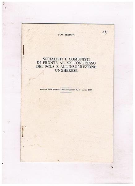Socialisti e comunisti di fronte al XX Congresso del Pcus e all'insurrezione ungherese. Estratto dalla Rivista "Città & Regione" n. 4 - Aprile 1977.