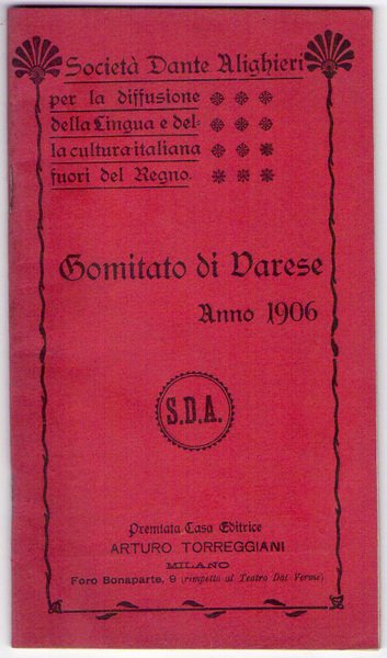 Società Dante Alighieri per la diffusione della lingua e della cultura italiana fuori del Regno. Comitato di Varese anno 1906.