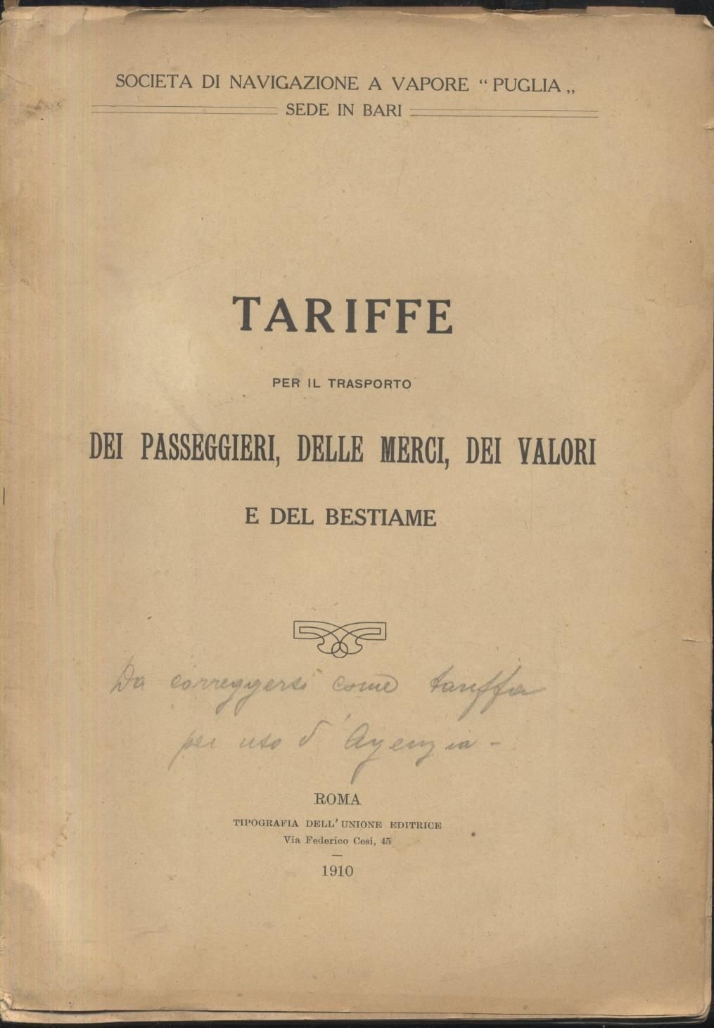 società di navigazione a vapore "Puglia" Tariffe per il trasporto dei passeggieri, delle merci, dei valori del bestiame. Catalogo.