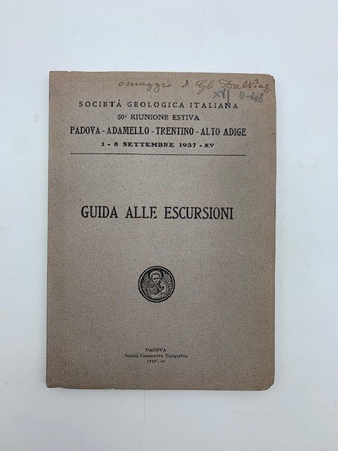 In 16 (cm 12 x 16,5), pp. 89 + (3) con riproduzioni fotografiche nel testo e 1 grande tavola finale piu' volte ripiegata con panorama delle Alpi Passirie, Breonie, Aurine dal passo di Monte Giovo. Brossura editoriale con omaggio autografo di Dal Piaz al piatto anteriore. Pubblicazione curata dalla Societa' geologica italiana.
