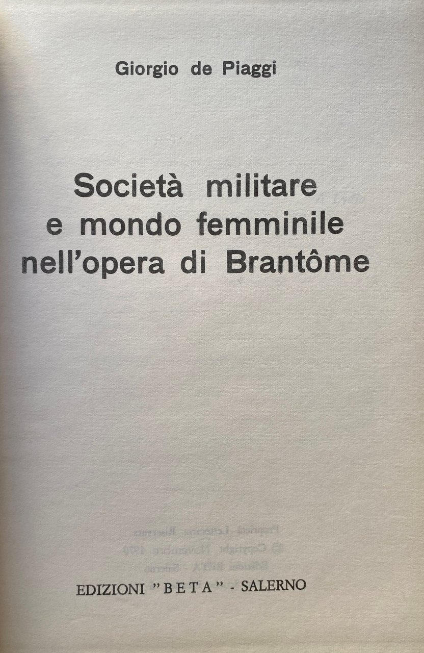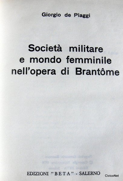 - Critica letteraria, Saggi critici, Letteratura francese, Società militare, Brantome, Storia, Studi storici, Vita militare, Pedagogia, Formazione culturale, Cultura francese, Cinquecento, Libri rari, Collezionismo, Storia di genere