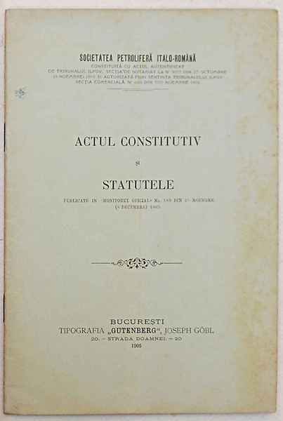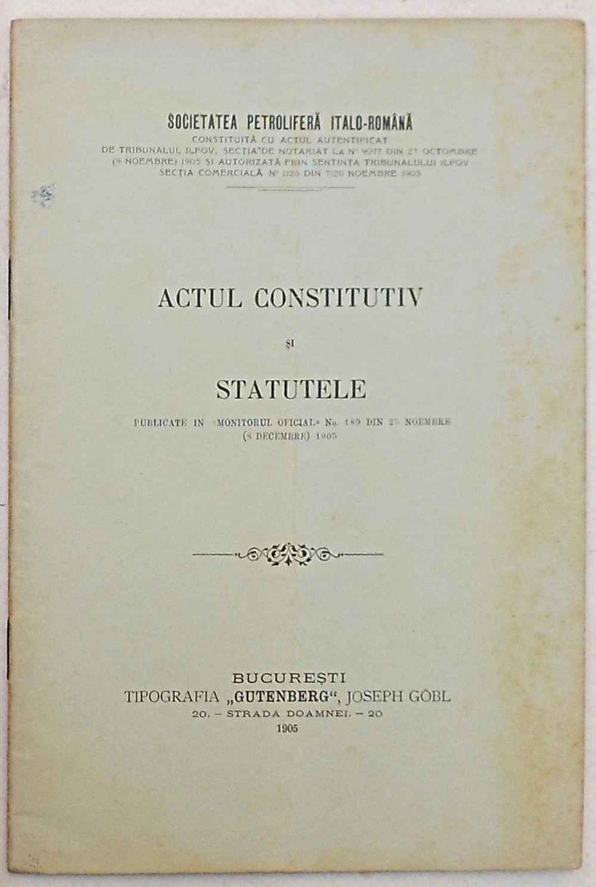 Società Petrolifera Italo-Romana. Actul Constitutiv si Statutele.