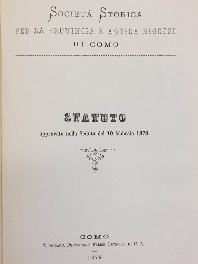 Società Storica per la Provincia e antica diocesi di Como. Statuto approvato nella seduta del 10 febbraio 1878.