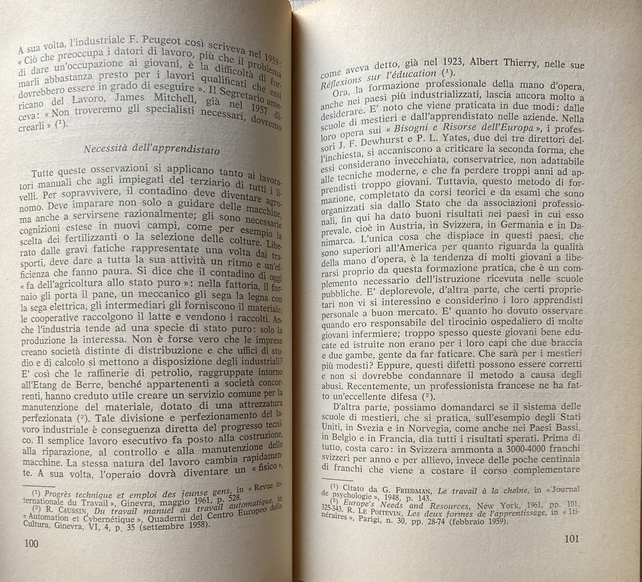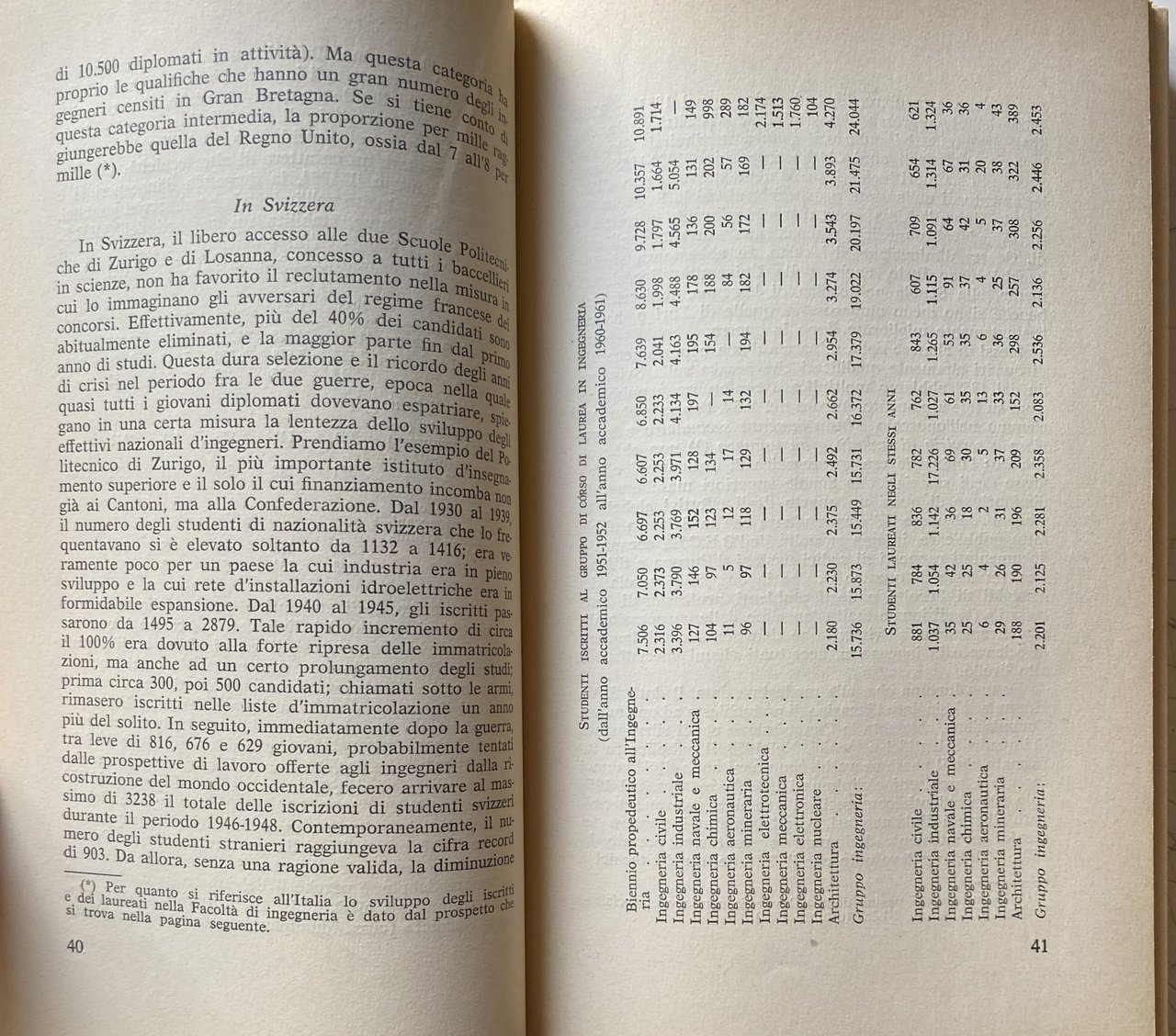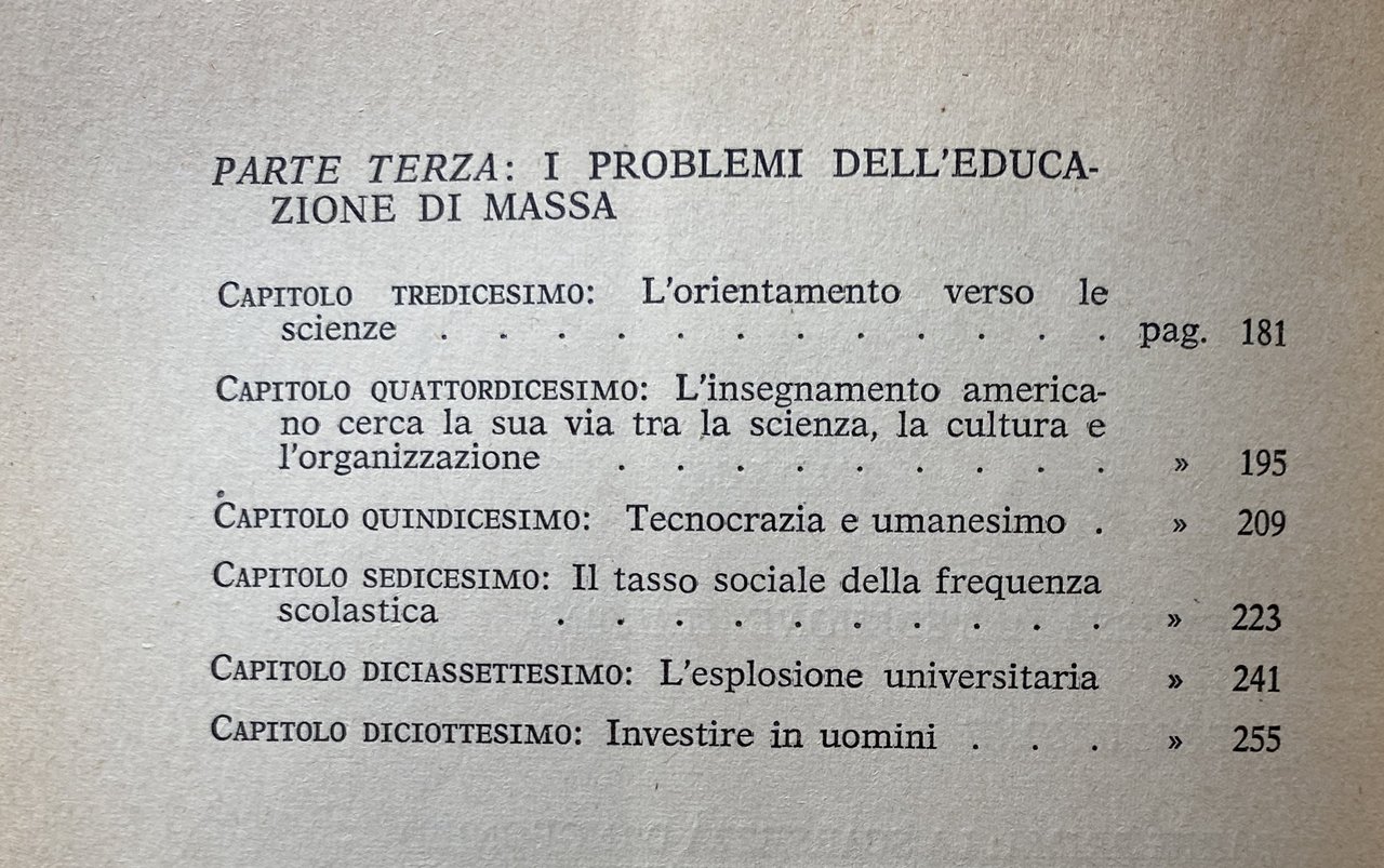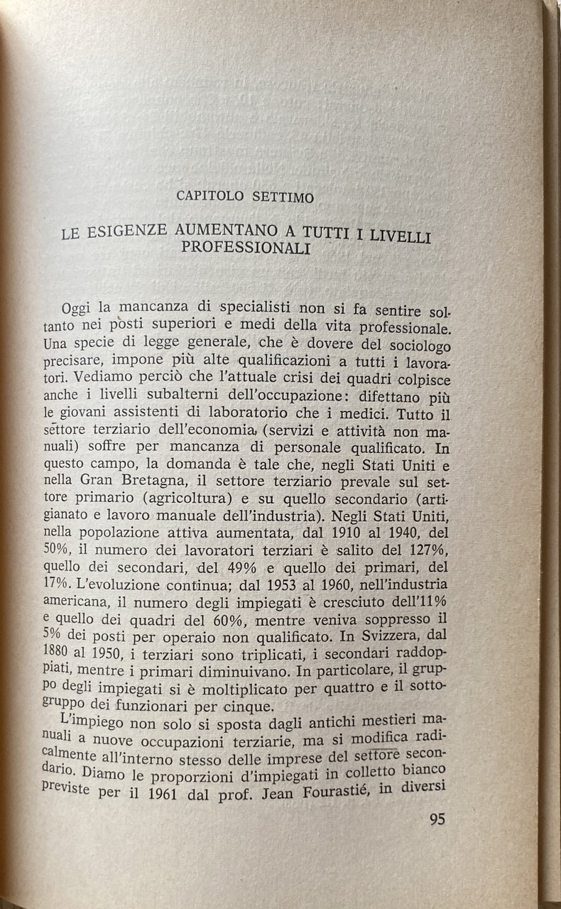 Soggetti: Sociologia dell'educazione di massa Scuola Società Anni Sessanta Teorie sociologiche Pedagogia Didattica Scienze sociali politiche Formazione professionale Lavoro manuale Disoccupazione Occupazione Specializzazione Politica dell'impiego Emile Durkheim Musgrave Istruzione Attività Bisogni Civiltà Classe Comunità Concezione Condizioni Conflitti Conoscenza Counseling Critica Cultura Demografia Economia Europa Folklore Gruppo Impieghi Industria Intellettuale Insegnamento Livello Macroeconomia Mercato Metodologia Mezzi Classe operaia Parcellizzazione Wilfredo Pareto Personalità Problemi Produzione Progresso Psicologia Lavoratori Psicosociologia Retribuzione Salario Rivoluzione industriale Scolastica Losanna Settore terziario Sindacale Sindacati Sistema Sport Soddisfazione Statistica Sviluppo Tecnica Tecnocrazia Tecnologica Umanesimo Umanistica Medicina Insegnamento Qualità Scienziati Scarsità Domanda Offerta Personale Servizi Terziario Manodopera qualificata Riforma Livelli Grado Carenza Tecnici Service actif Francia Svizzera Inghilterra Germania Italia Politique de l'emploi et de l'éducation Collezionismo Saggi Libri rari Vintage fuori catalogo Travail John Graunt Analfabetismo Scolari Amministrazione Americani Austria Esigenze Quadri Candidati Cifre Collegi Confronto Corsi Studi Ingegneria Laurea Laureati Scuole Università Personale educativo Studenti Dipendenti Figli Sondaggio Insegnanti Aziende Stabilimenti Stato Addestrati Recruiter Guerra Migliori ingegneri Internazionali Giovani Maestri Media mondiale nazionale Popolazione Preparazione Previsione Primari Professioni Mestieri Liberalismo Libera professione Professionisti Proporzione Reclutamento Specialisti sovietici Russia Accademiche Élites Statistiche universitarie Dati Scienze Orientamento Investimenti Capitale umano Risorse umane André Siegfried Segretariato Managers Astronautica James Burnham Carriera Mansioni Famiglia Distribuzione Ricchezza Potere Louis Armand Discipline C.P. Snow F.R. Leavis Anni Cinquanta Merton Bloom P. Rossello Robert Escarpit Manuali testo Rivoluzione William H. Whyte Dirigenti Rinnovamento Generazione Polonia Waszak Anni Settanta Recessione Immigrati Stranieri Inclusione Donne Apprendistato Albert Thierry Tirocinio Stage Aziende Fourastié Colletti bianchi Regno Unito Diplomati Liceo Inchieste Marxismo Apprendimento Baccellierato Ernesto Codignola Karl Mannheim W. A.C. Stewart Alfred Sauvy Auguste Comte Claude Lévi-Strauss Développement Duchac étude Gaston Bouthoul Richard Georges Gurvitch Henri Mendras Jean Duvignaud économie Lucien Goldmann Marcel Mauss Max Derruau Moreno Oppens Payot Philosophie Raymond Aron Statistique Technique Sociology of mass education School Society 1960s Sociological theories Pedagogy Didactics Political social sciences Professional training Manual Job Unemployment Occupation Specialization Employment policy Education Activities Needs Civilization Class Community Conception Conditions Conflicts Knowledge Critical Culture Demography Economy Europe Group Employment Industry Intellectual Teaching Level Macroeconomics Market Methodology Means Working class Partitioning Personality Problems Production Progress Psychology Workers Psychosociology Remuneration Salary Industrial Revolution Schools Lausanne Tertiary sector Trade Unions System Satisfaction Statistics Development Technique Technocracy Technological Humanism Humanistic Medicine Teaching Quality Scientists Scarcity Demand Supply Personnel Services Tertiary Skilled labor Reform Levels Degree Shortage Technicians France Switzerland England Germany Italy Collectibles Essays Rare books out of print Illiteracy Schoolchildren Administration Americans Needs Executives Candidates Figures Colleges Comparison Courses Studies Engineering Degree Graduates Schools Universities Educational staff Students Employees Children Survey Teachers Companies Establishments State Trained War Best engineers International Young Masters National world average Population Preparation Forecast Primary Professions Freelance Professionals Proportion Recruitment Soviet specialists Academics University statistics Data Sciences Orientation Investments Human capital Resources Secretariat Managers Astronautics Career Duties Family Distribution Wealth Power Disciplines 1950s Text manuals Revolution Renewal Generation Poland 1970s Recession Immigrants Foreigners Inclusion Women Apprenticeship Internship Businesses White Collar United Kingdom High School Graduates Investigations Learning Baccalaureate