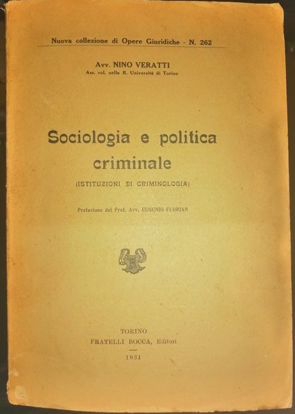Sociologia e politica criminale (istituzioni di criminologia). Prefazione del prof. Avv. Eugenio Florian