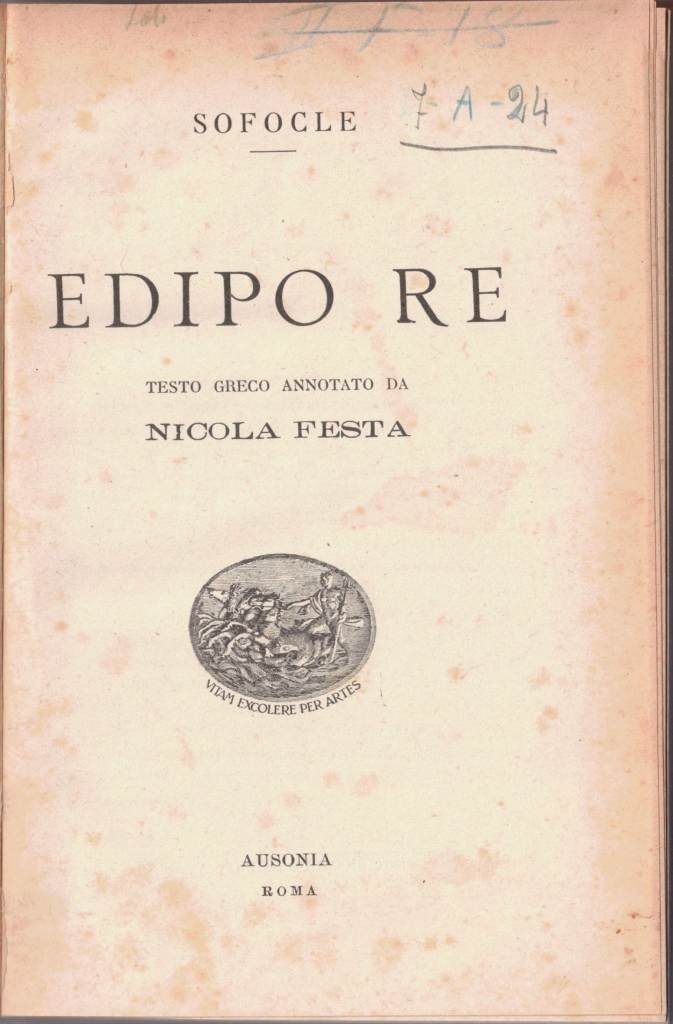 Sofocle (Sophocles), Edipo re, testo greco annotato da N. Festa