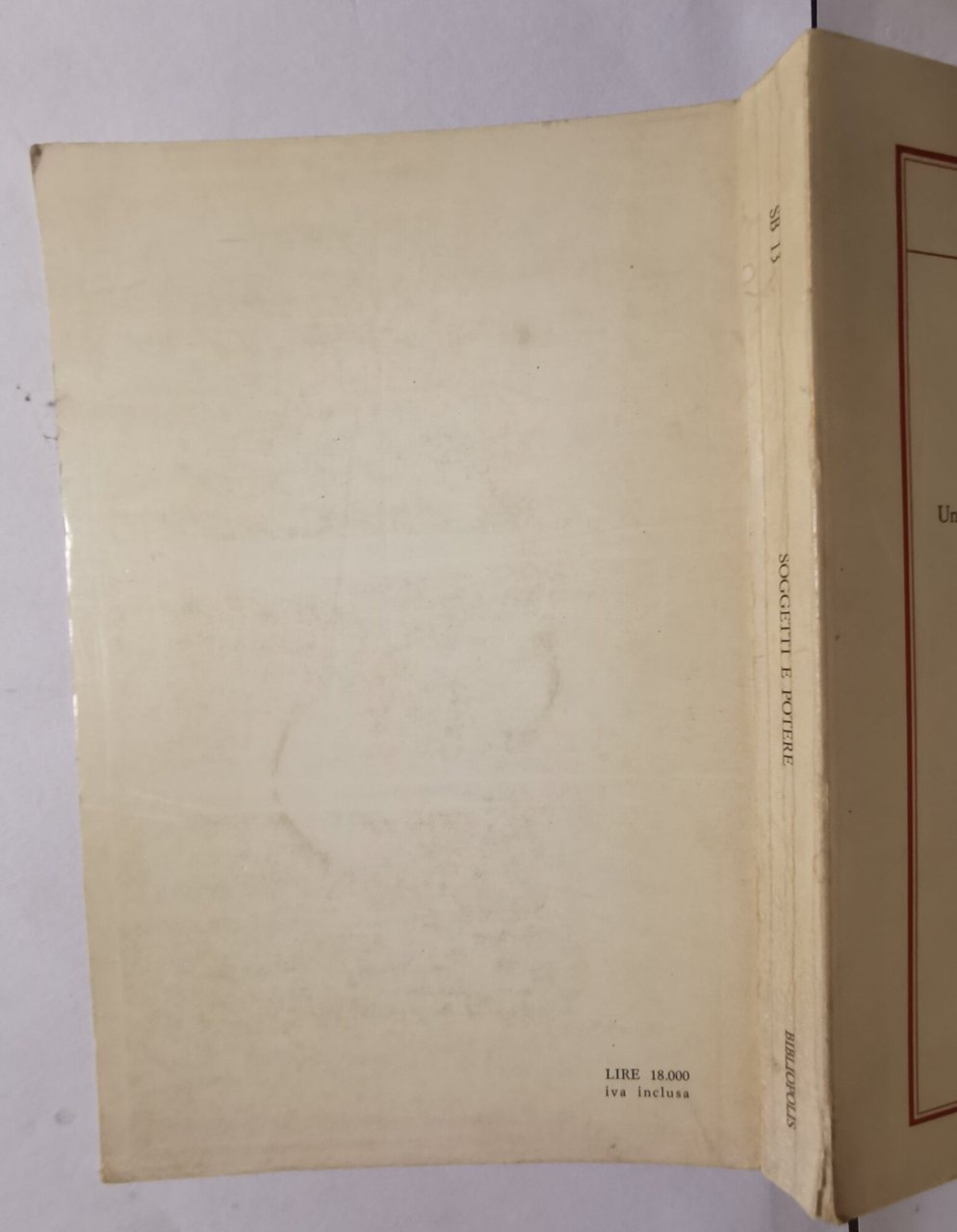 In 8', br.ed., pp.258; saggi di Bobbio, Bodel, Marramao, Rella, Rovatti, Schiera, Stame,a cura di V. Dini.pieghe al dorso, lievi segni d'uso alla cop, data d'appartenenza in prima bianca, sporadici segni a matita ai margini del testo, interno comunque in buono stato. ***Due to bureaucratic reasons, books dated over 70 years old cannot be immediately exported, please contact us before placing the order.***