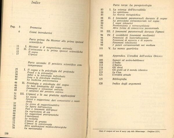 In 8� - pp.130 - Cartonata con copertina illustrata - Ottima conservazione. Prima edizione. - " Il mondo dell'inconscio,i fenomeni parapsicologici,le allucinazioni,la medicina psicosomatica,la narco analisi,l'ipnotismo in terapia".