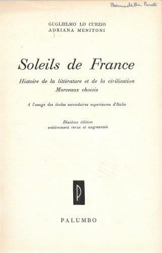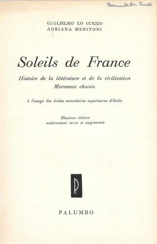 Soleils de France. Histoire de la Litterature et de la Civilisation. Morceaux choisis à l'usage des ecoles secondaires superieures d'Italie