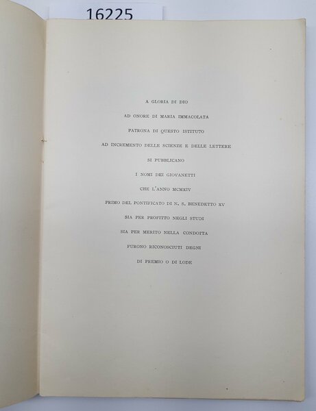 Solenne Distribuzione dei premi agli alunni dell'Istituto Massimo alle Terme 17 dicembre 1914