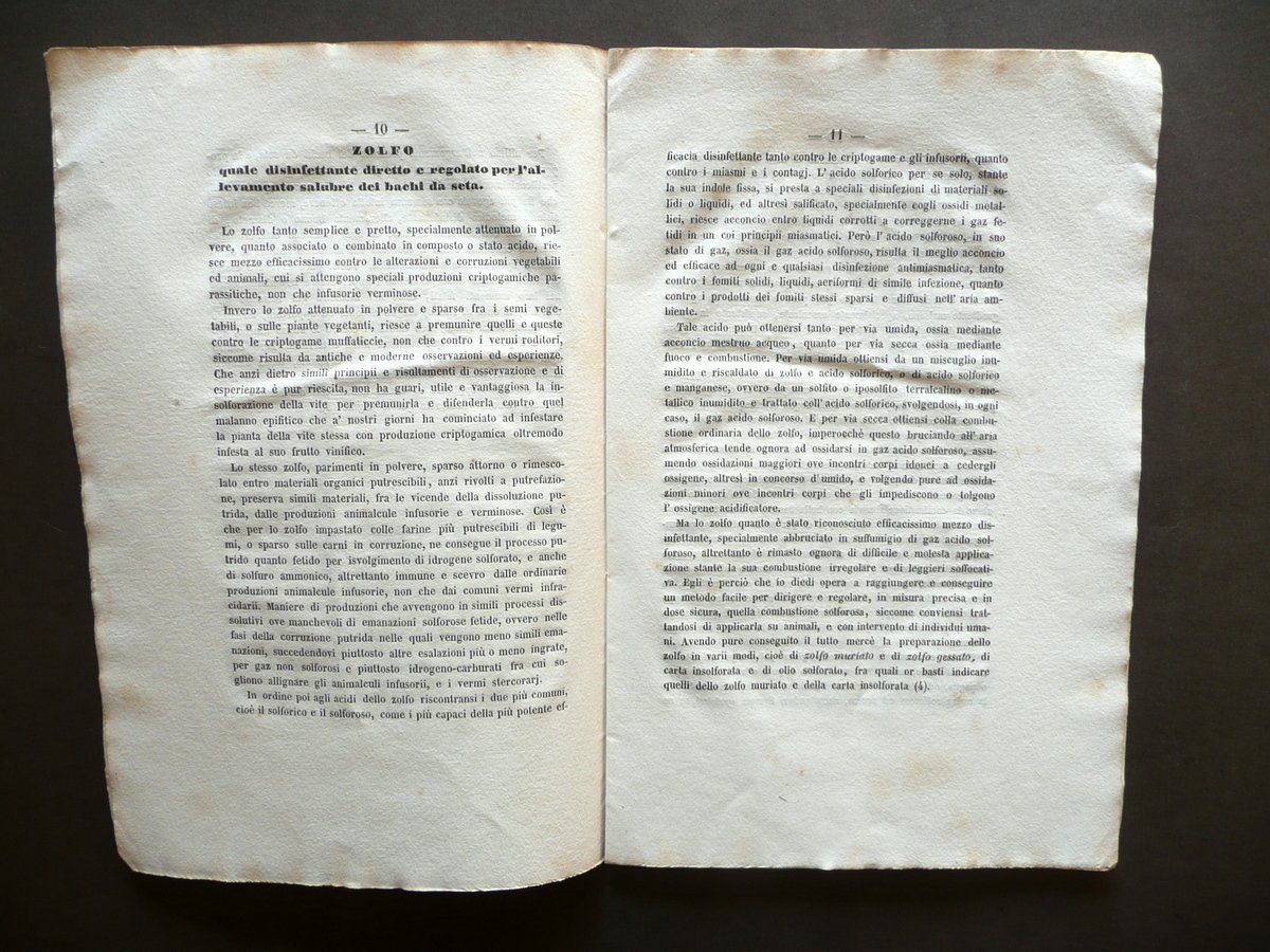 Solfo e Carbone Quali Disinfettanti per Allevamento Bachi da Seta Grimelli 1858