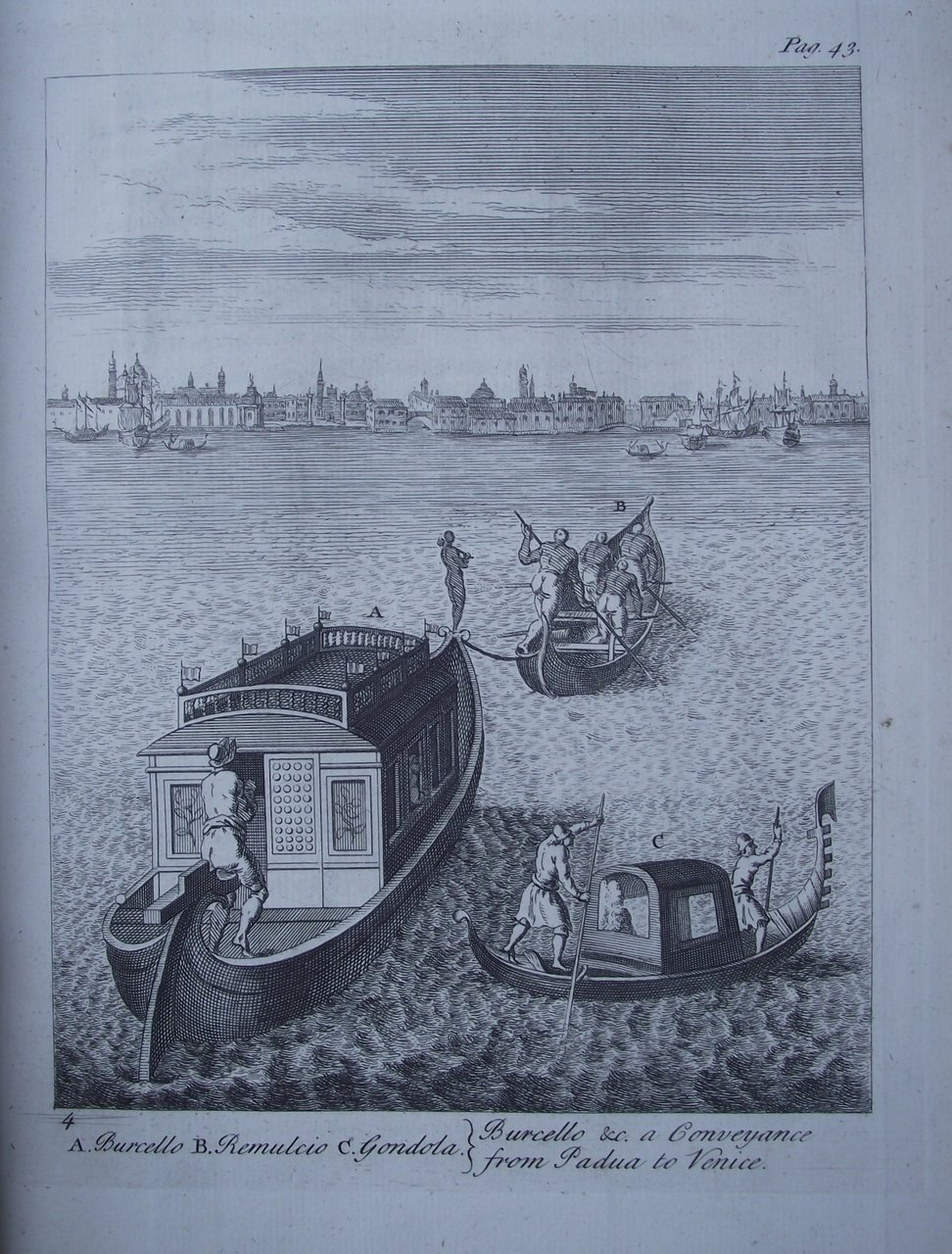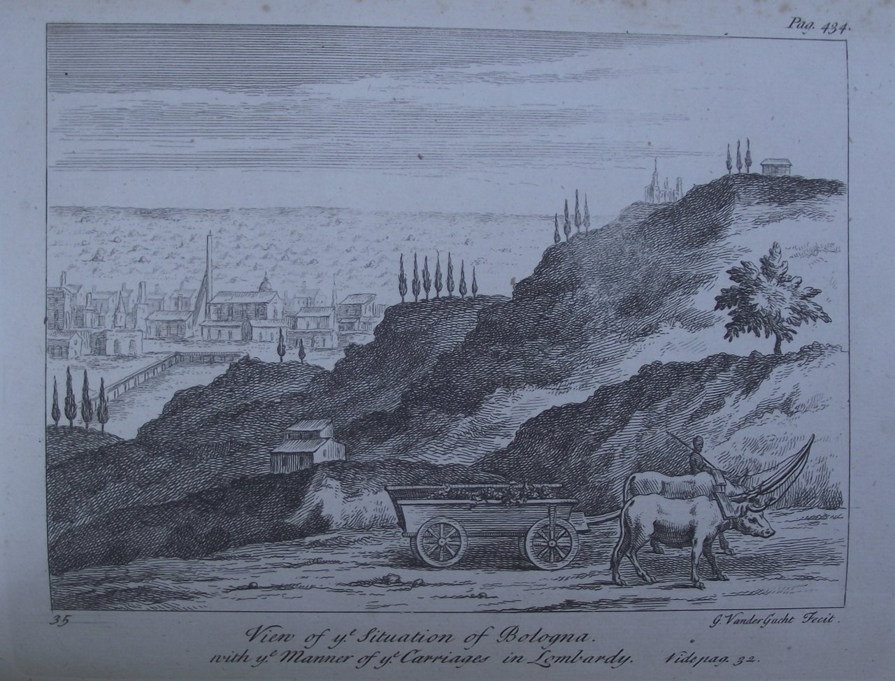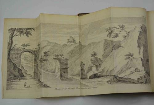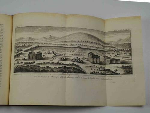 Due volumi in uno di cm. 26,5, pp. 364 (2) -516 (70). Con figure in legno (di cui una su una tavola f.t.) e 39 (di 40!) tavole incise in rame fuori testo (di cui 2 ripiegate). Legatura coeva in piena pelle con dorso e nervi (rifatto recentemente) e titoli in oro su tassello originale. Sguardie marmorizzate. Ottimo stato di conservazione, marginoso e fresco. Manca la tavola n. 18 raffigurante un bassorilievo di Villa Giustiniani. Le tavole raffigurano alcune vedute, antichità e due riguardano la situazione agricola del bolognese ed il modo di coltivare la vite in Lombardia. Esemplare cui sono state aggiunte (oltre alle tavole citate) una carta geografica ripiegate a colori dell'Italia centro-settentrionale, e altre 8 tavole provenienti da un opera dello stesso periodo (Lalande?). Seconda edizione (la prima apparve nel 1730) di questo classico viaggio che segue le orme del Grand Tour settecentesco. Cfr. l'enigmatica descrizione che ci offre Cicognara (4153): "Pochissimo noto è in Italia questo viaggio pubblicato con 40 tavole in rame... Vi sono al solito moti errori, ma anche molta semplicità, e poche sinistre prevenzioni"; Pine-Coffin (720/3): "Standard tour with particular reference to art"; Olschki (733): "Wright ed i suoi compagni partono da Dover il 1. marzo 1720. Della Francia sono descritte brevemente Beauvais, Parigi, Lione, Marsiglia dove s'imbarcano... just before the Plague broke out there... (p. 18). Dopo sei giorni di mare burrascoso approdano a San Remo invece che a Livorno. Dall'Italia settentrionale, Venezia, la costa adriatica passano a Napoli e Roma... Rimontano per Siena, Firenze, Bologna, Milano, Verona. Dalla p. 493... rapido transito per il Tirolo, la Germania, l'Olanda. Arrivano a Londra il 17 giugno 1722.".