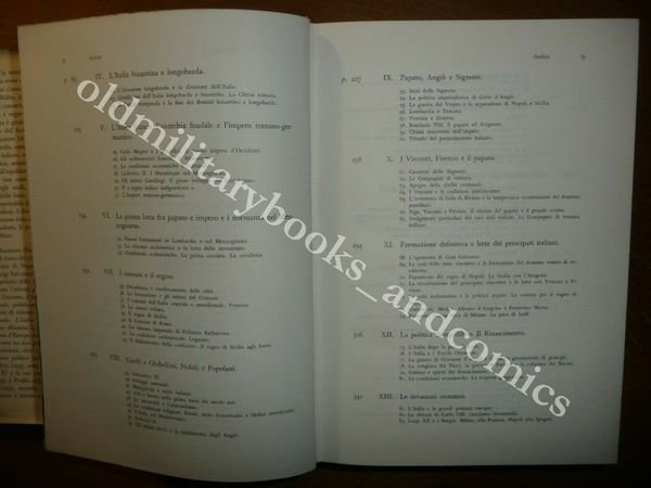 DESCRIZIONE: BIBLIOTECA CULTURA STORICA Einaudi Ed. Torino 1961 nuova Ed., br. ed. ca. con sovracc. ill. col., pp. 667+ 31 tavv.f.t. in 8°. In sintesi dall'indice: Dai tempi preistorici alla conquista romana. L'Italia romana fino alla caduta dell'impero. Ostrogoti e Bizantini. L'Italia Bizantina e Longobarda. L'Italia franca, l'anarchia feudale e l'impero romano-germanico. La prima lotta fra papato e impero i Normanni nel Mezzogiorno. I Comuni e il Regno. Guelfi e Ghibellini, nobili e popolari. Papato, Angiò e Signorie. I Visconti, Firenze e il papato. Formazione definitiva e lotte dei principati italiani. La politica di equilibrio - Il Rinascimento. Le invasioni straniere. Riforma e Controriforma. L'Italia sotto il dominio Spagnolo. Il Settecento. Dalla Rivoluzione alla Restaurazione. Il Risorgimento. Formazione dello stato unitario. L'Italia dopo il 1870. CONDIZIONI: Ottime/Perfette. Il vecchio proprietario, un matematico, era stato Preside di Liceo, e Docente Universitario. Questo libro proviene dalla sua importante biblioteca privata, per cui alla prima bianca sono riportati i codici di catalogazione oltre all’etichetta sul dorso. PESO / WEIGHT: 1000 gr. without package